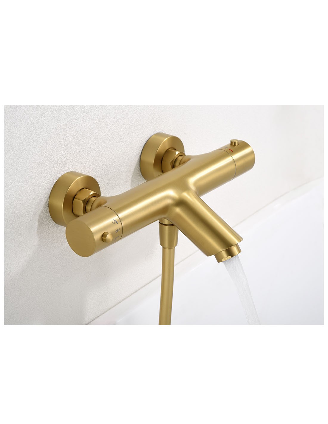El Kit grifería bañera y ducha oro u oro rosa termostático - Monza de Imex en acabado oro u oro rosa termostático combina lujo, funcionalidad y seguridad, ideal para baños modernos que buscan estilo, confort y control total del agua. Su acabado oro / oro rosa aporta un toque sofisticado y exclusivo, convirtiendo la ducha y la bañera en elementos protagonistas del baño.