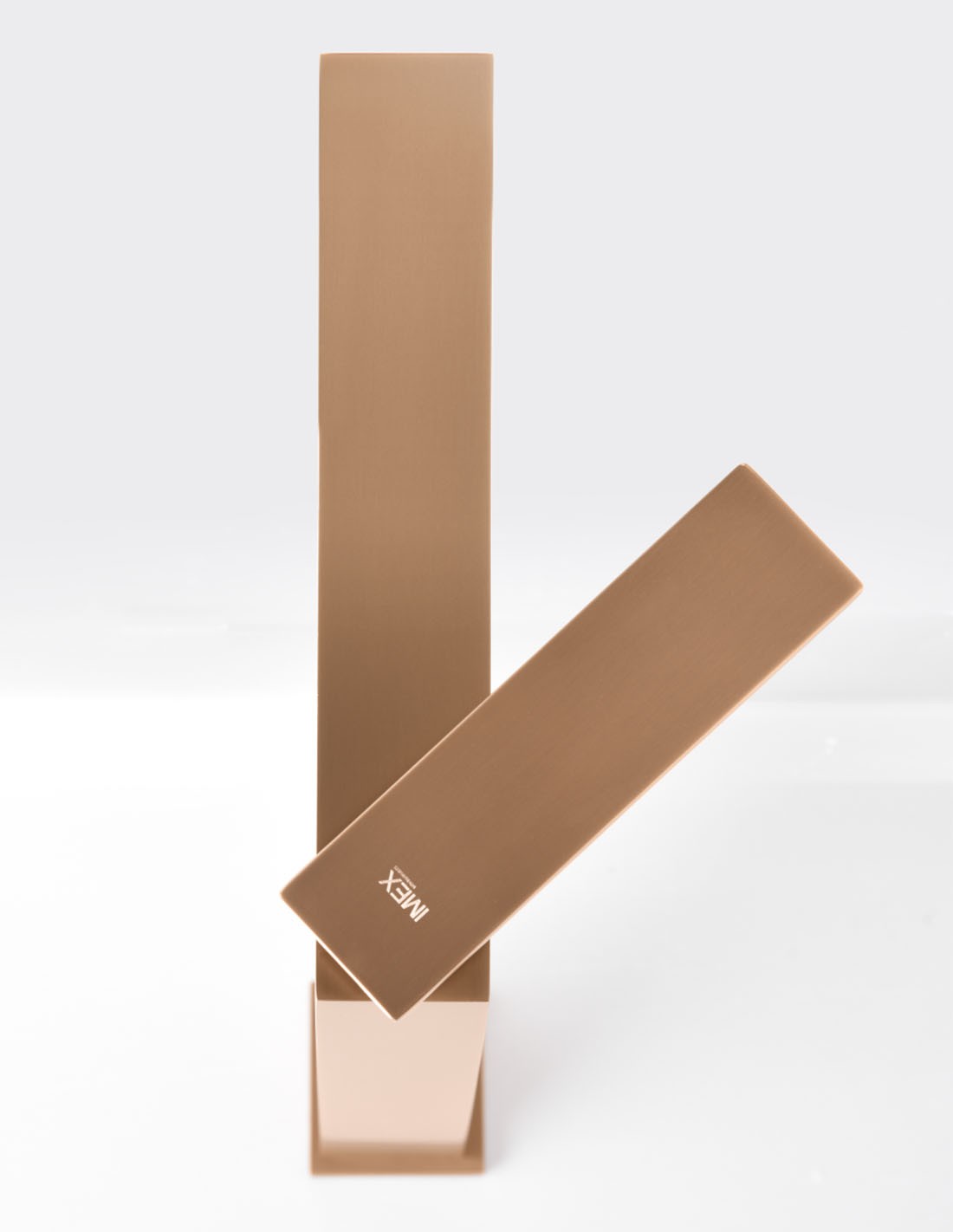 Grifo de lavabo cuadrado caño alto oro - oro rosa modelo PISA de Imex.