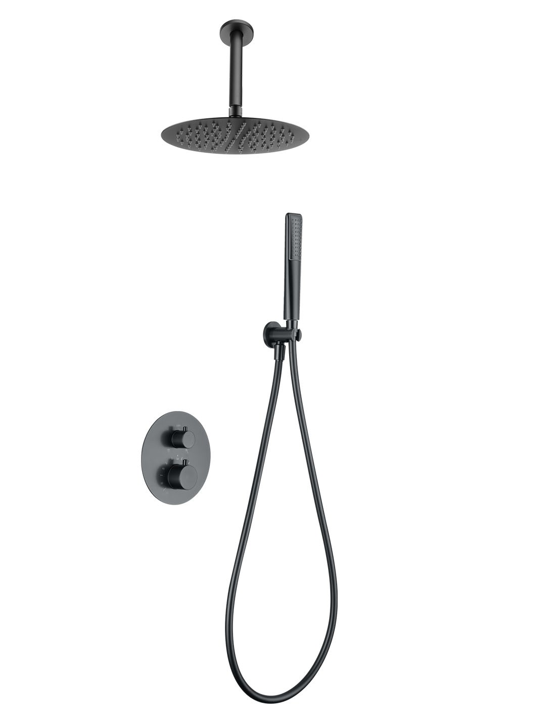 Conjunto de ducha empotrado a techo redondo negro - black gun metal termostática SALERNO de Imex