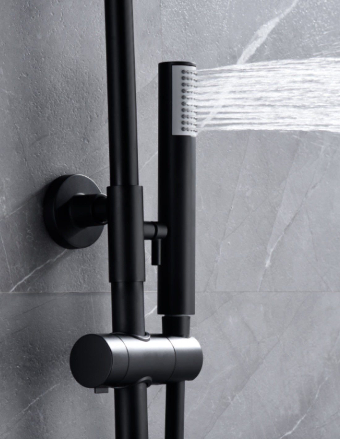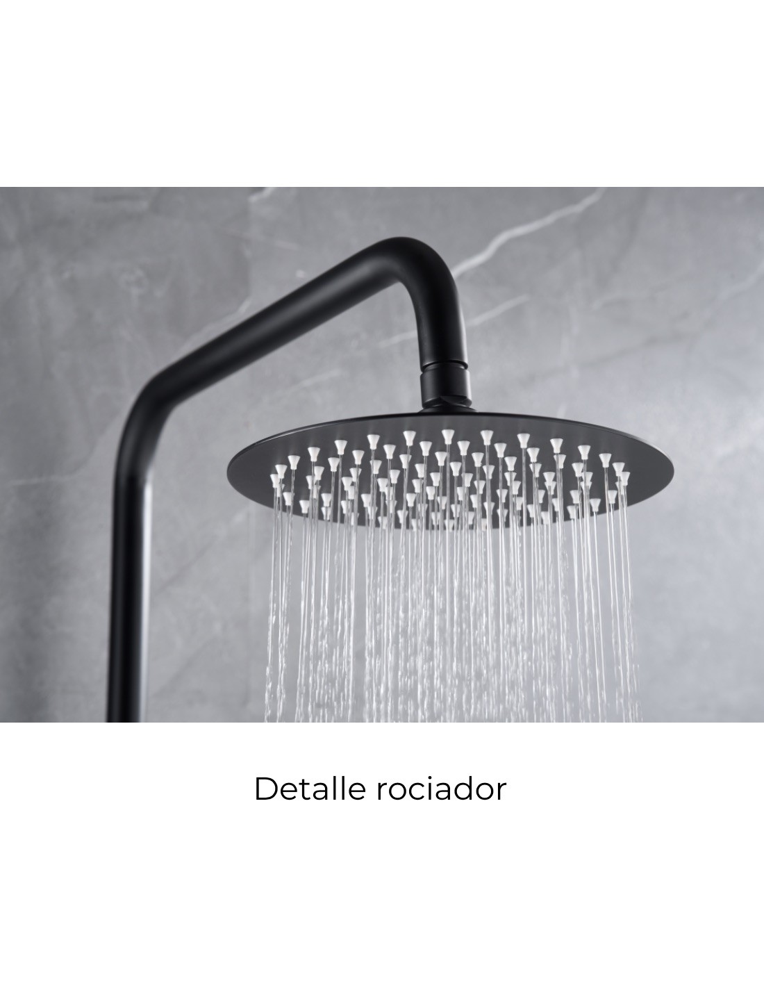 Fabricada en latón de alta calidad, esta columna de ducha garantiza resistencia, durabilidad y un mantenimiento mínimo, gracias a su recubrimiento antical y anticorrosión. Su doble acabado, negro mate con detalles en black gun metal, ofrece un contraste sofisticado y actual, ideal para espacios de inspiración industrial o minimalista.