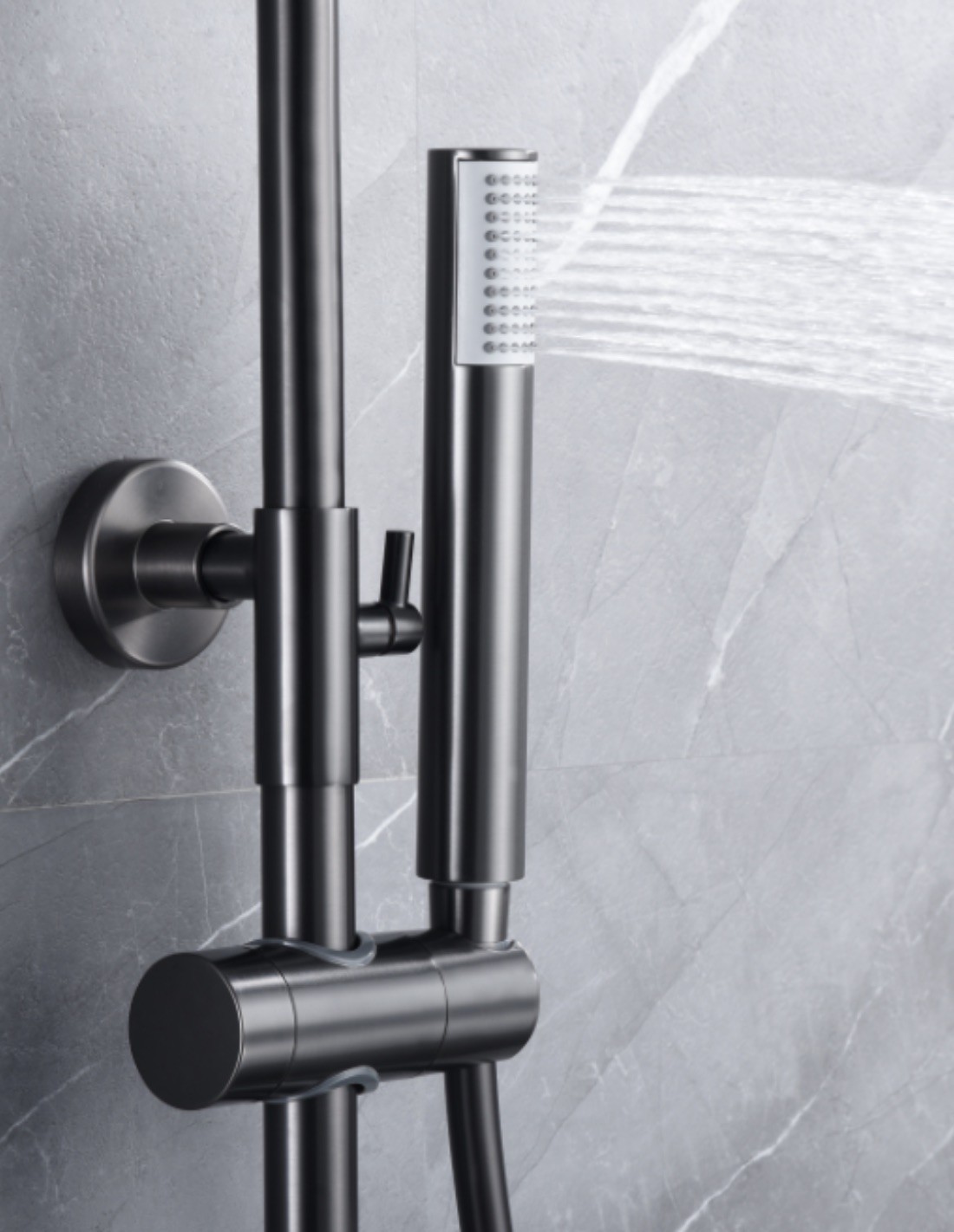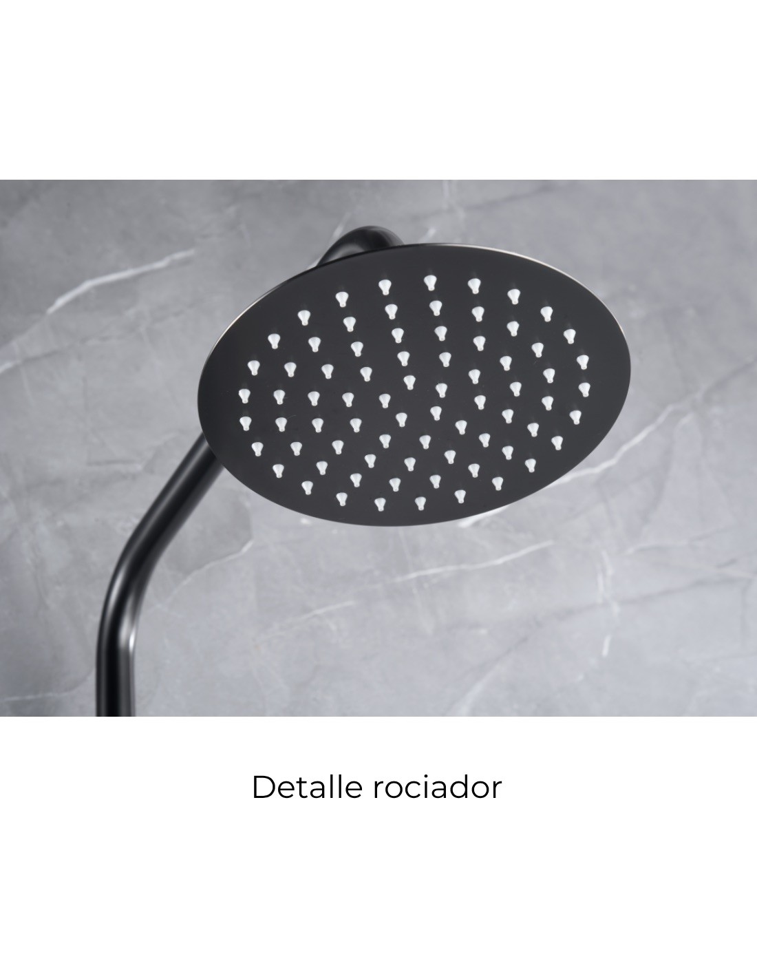 Fabricada en latón de alta calidad, esta columna de ducha garantiza resistencia, durabilidad y un mantenimiento mínimo, gracias a su recubrimiento antical y anticorrosión. Su doble acabado, negro mate con detalles en black gun metal, ofrece un contraste sofisticado y actual, ideal para espacios de inspiración industrial o minimalista.