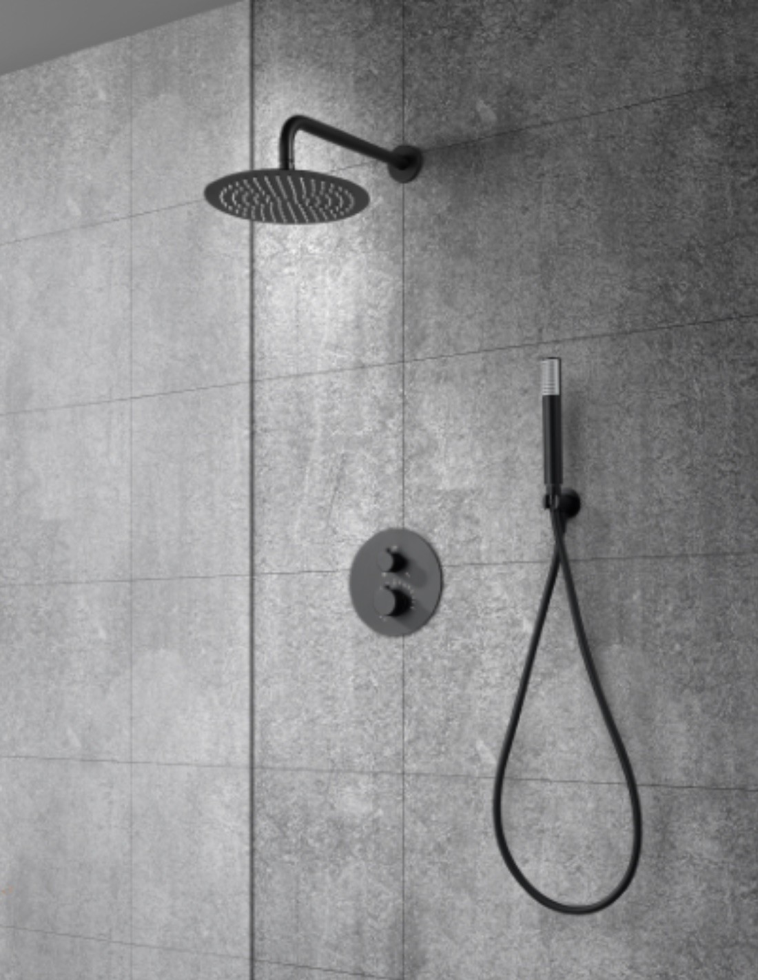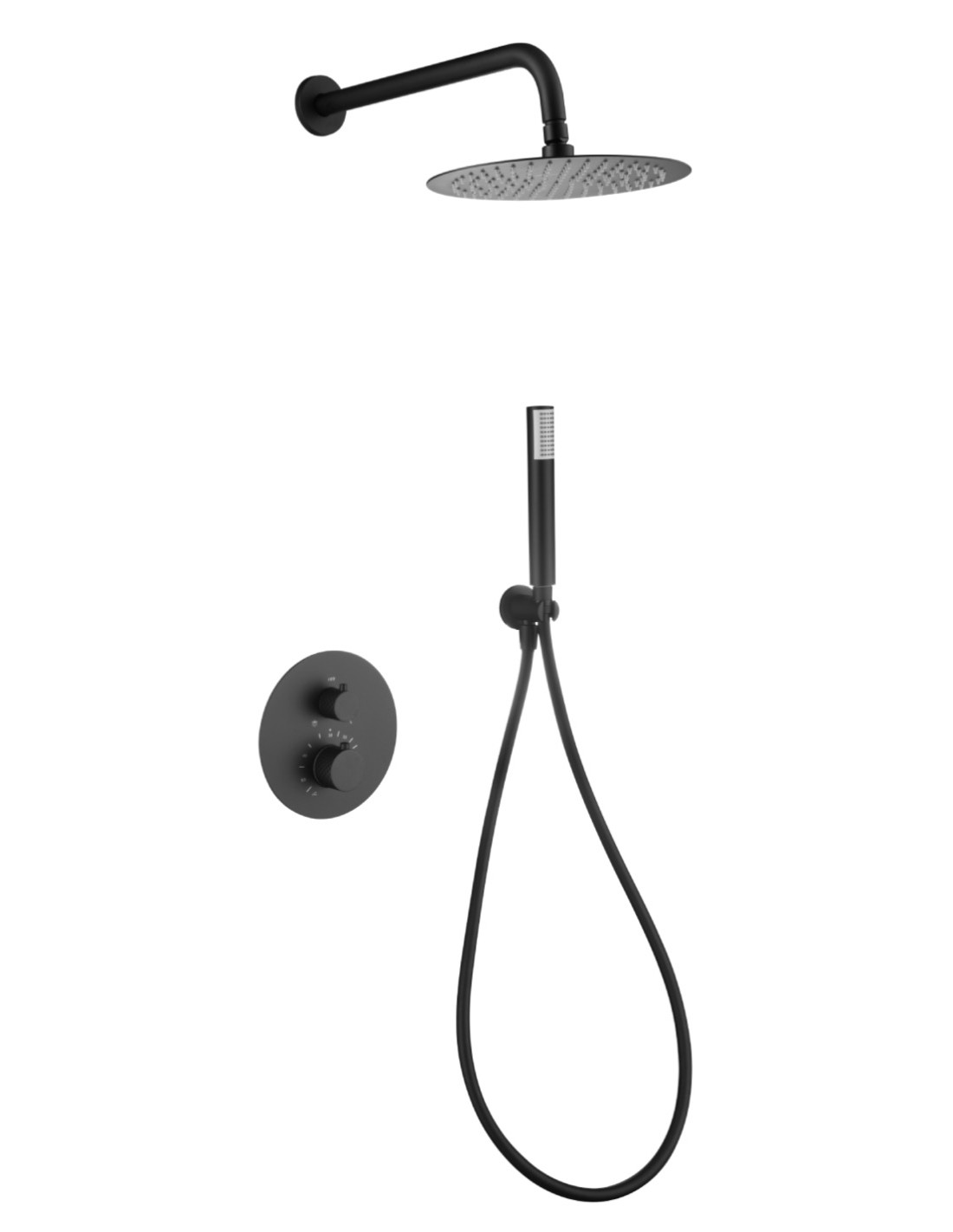 Conjunto ducha negro termostático empotrado modelo Genova de Imex