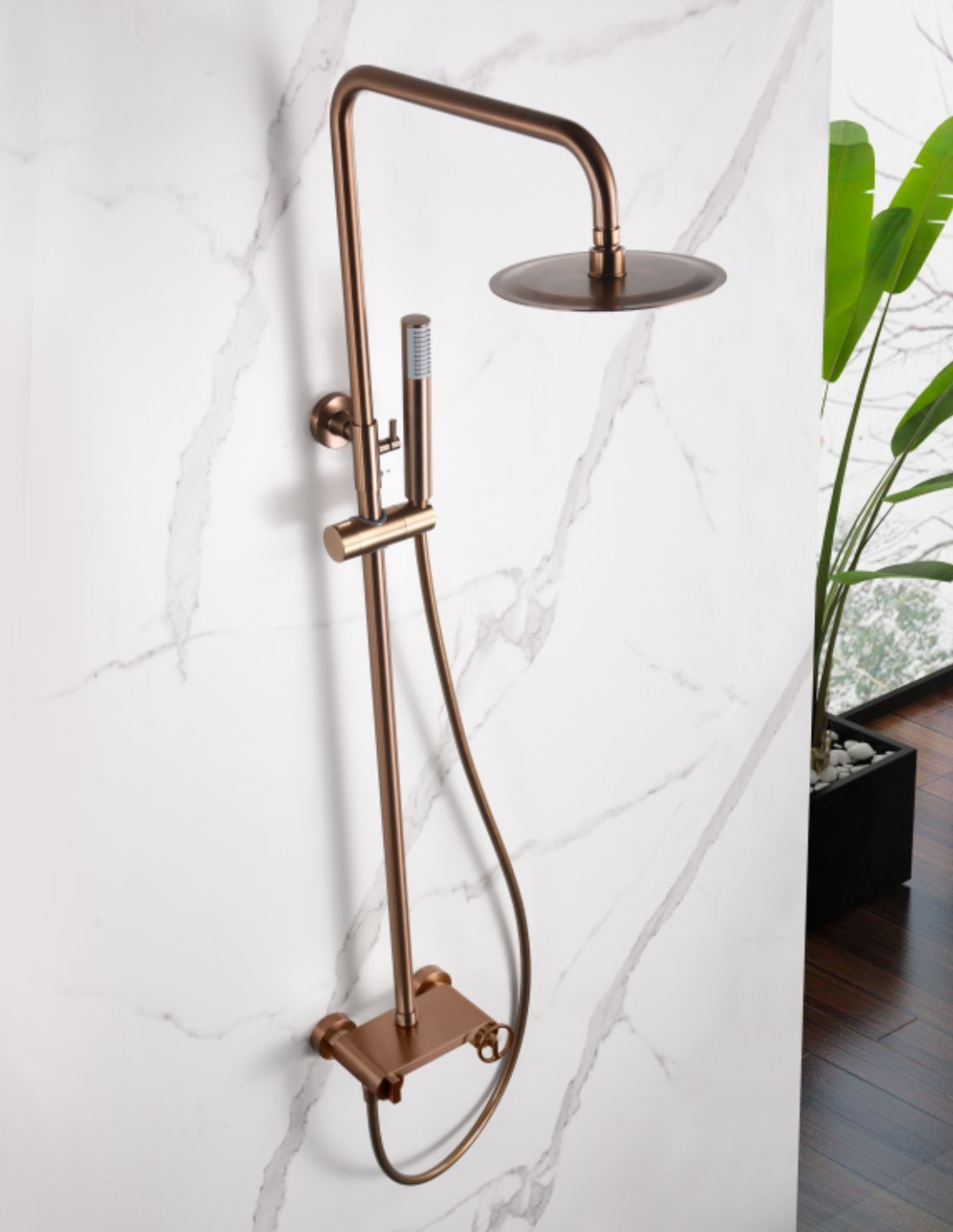 La columna de ducha OLIMPO oro / oro rosa de Imex aporta un toque de lujo y distinción a tu baño. Con su acabado en oro cepillado o en oro rosa cepillado, esta columna destaca por su elegancia moderna y diseño funcional, ideal para quienes buscan una experiencia de ducha exclusiva.