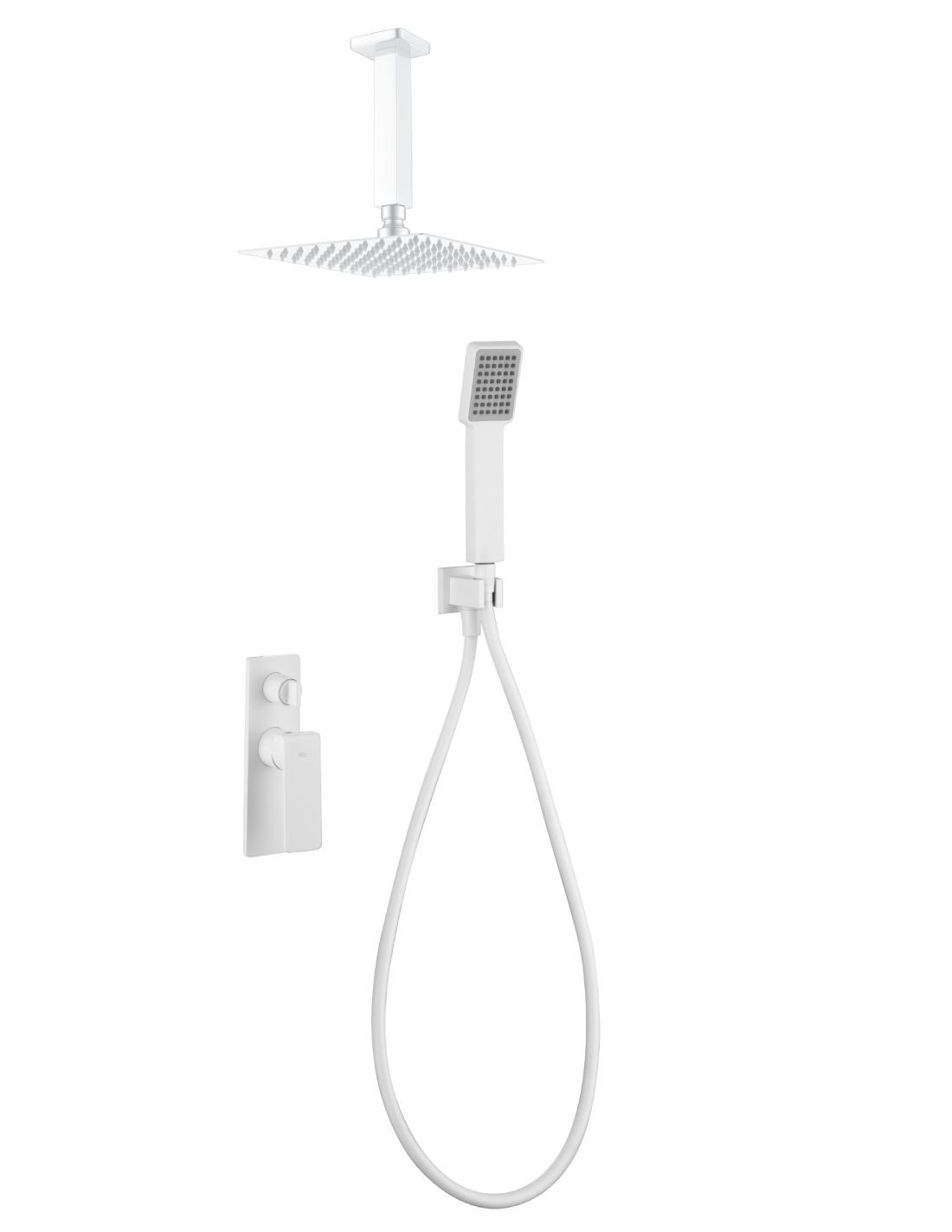 El Conjunto ducha empotrado blanco mate a techo - NADI de Imex es la elección ideal para un baño que busca el minimalismo escandinavo, la luminosidad y la pureza visual. Su instalación totalmente oculta, combinada con el acabado Blanco Mate, crea una estética limpia, diáfana y de diseño nórdico.