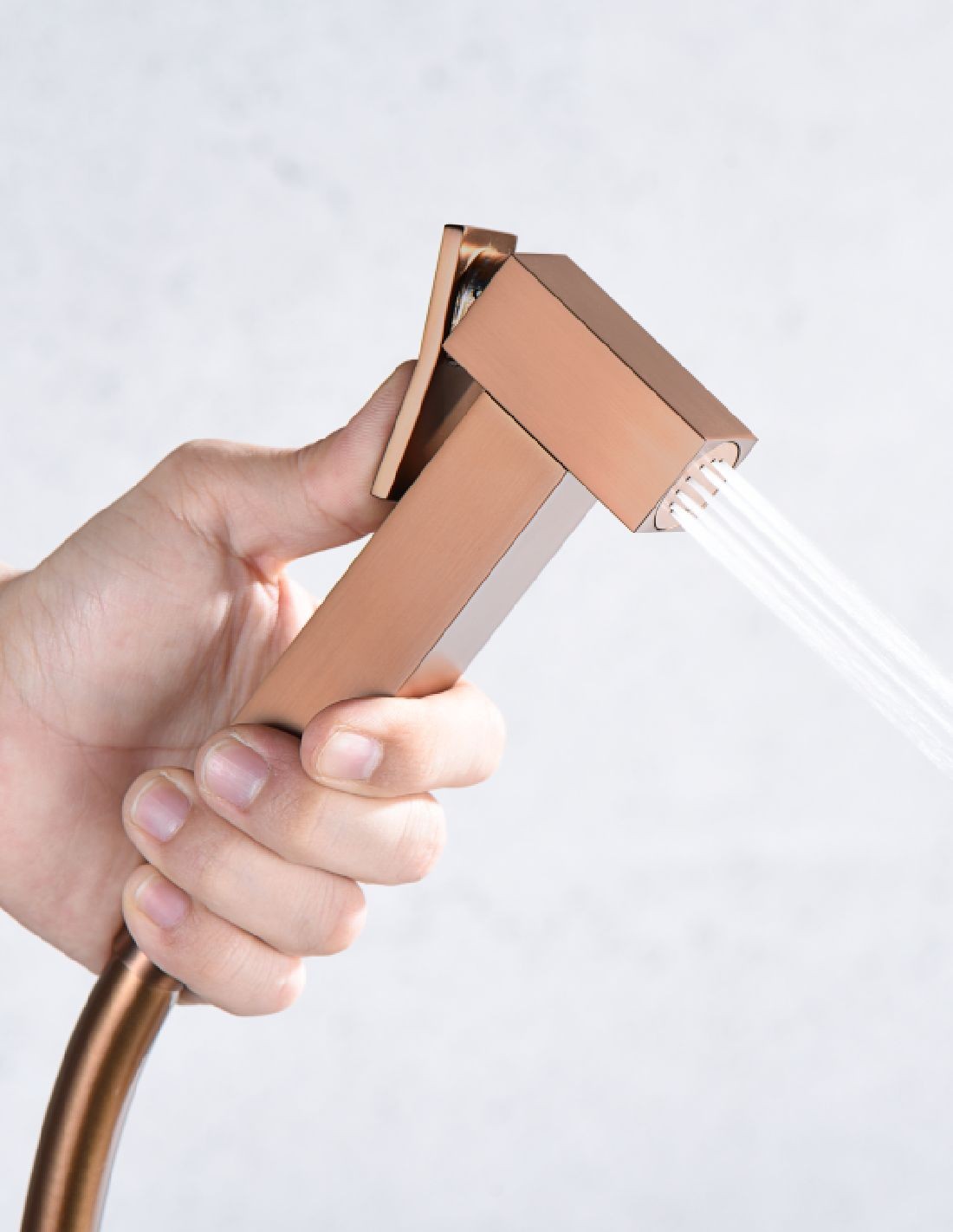 La Ducha oro cepillado u oro rosa cepillado higiénica - IRLANDA de Imex es el accesorio de lujo que transforma la funcionalidad en un elemento de diseño premium. Disponible en los exclusivos acabados Oro Cepillado y Oro Rosa Cepillado, este set proporciona una solución de higiene moderna y elegante junto al inodoro.