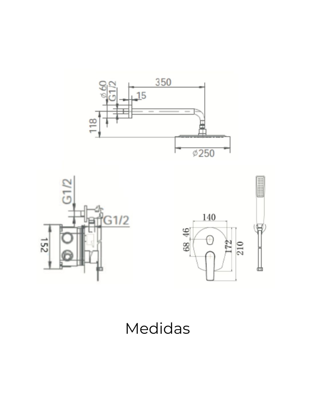 Grifería monomando empotrada directo a pared con diseño y acabado exclusivo. Rociador a pared y teleducha incluidos en el precio.