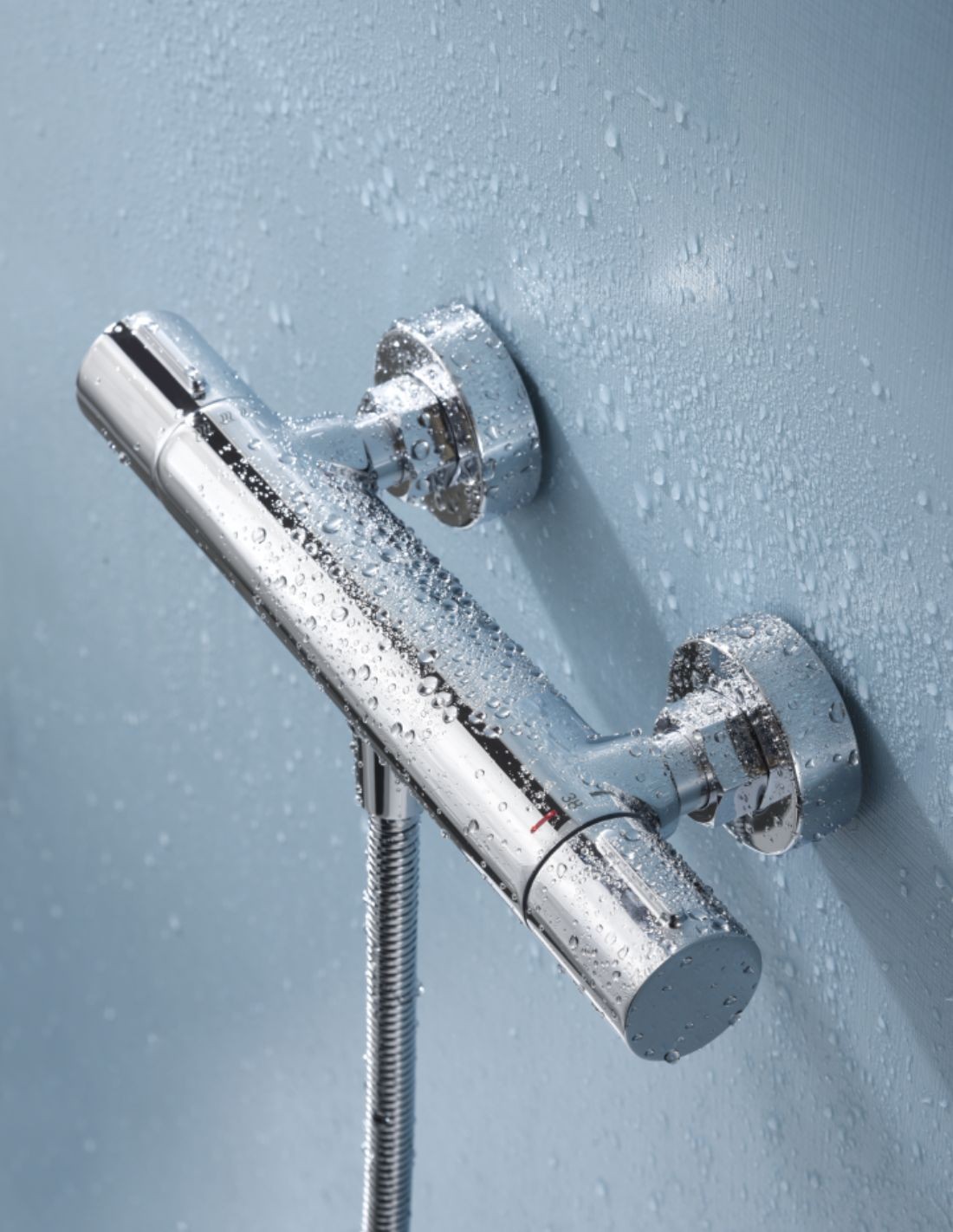 El Grifería cromada de ducha termostática - ECO KENT de Imex en elegante Cromo Brillo es la solución ideal para quienes buscan fusionar un diseño moderno y funcional con la máxima seguridad y la eficiencia energética en su ducha. Este grifo de instalación a pared se adapta a cualquier estilo de baño, aportando un acabado atemporal y luminoso.