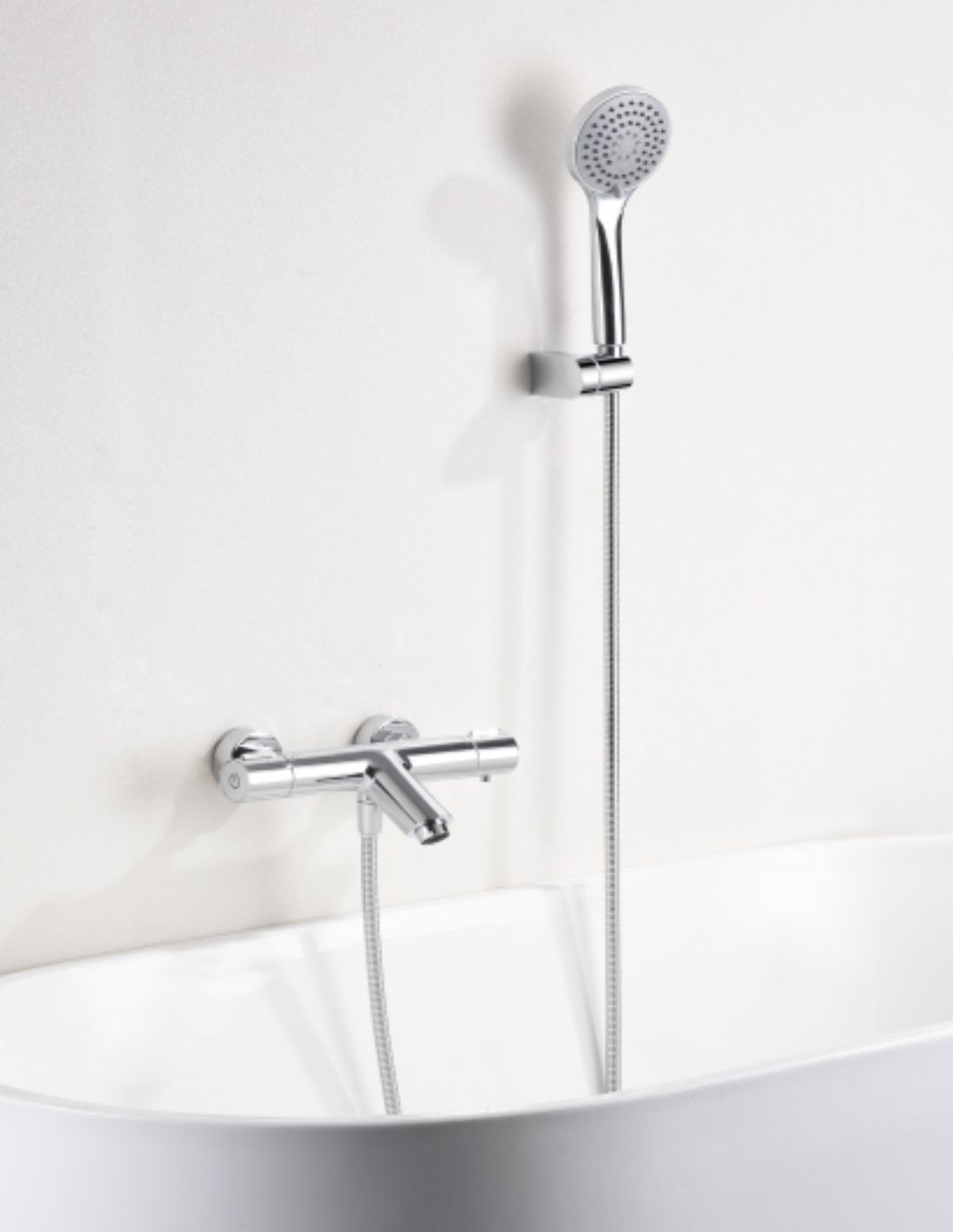 El Grifería para bañera cromada termostática - ECO KENT de Imex en elegante Cromo Brillo es la solución perfecta que combina un diseño atemporal y robusto con la máxima seguridad y la eficiencia energética en su bañera. Este grifo de instalación a pared aporta luminosidad y un acabado clásico de alta durabilidad.