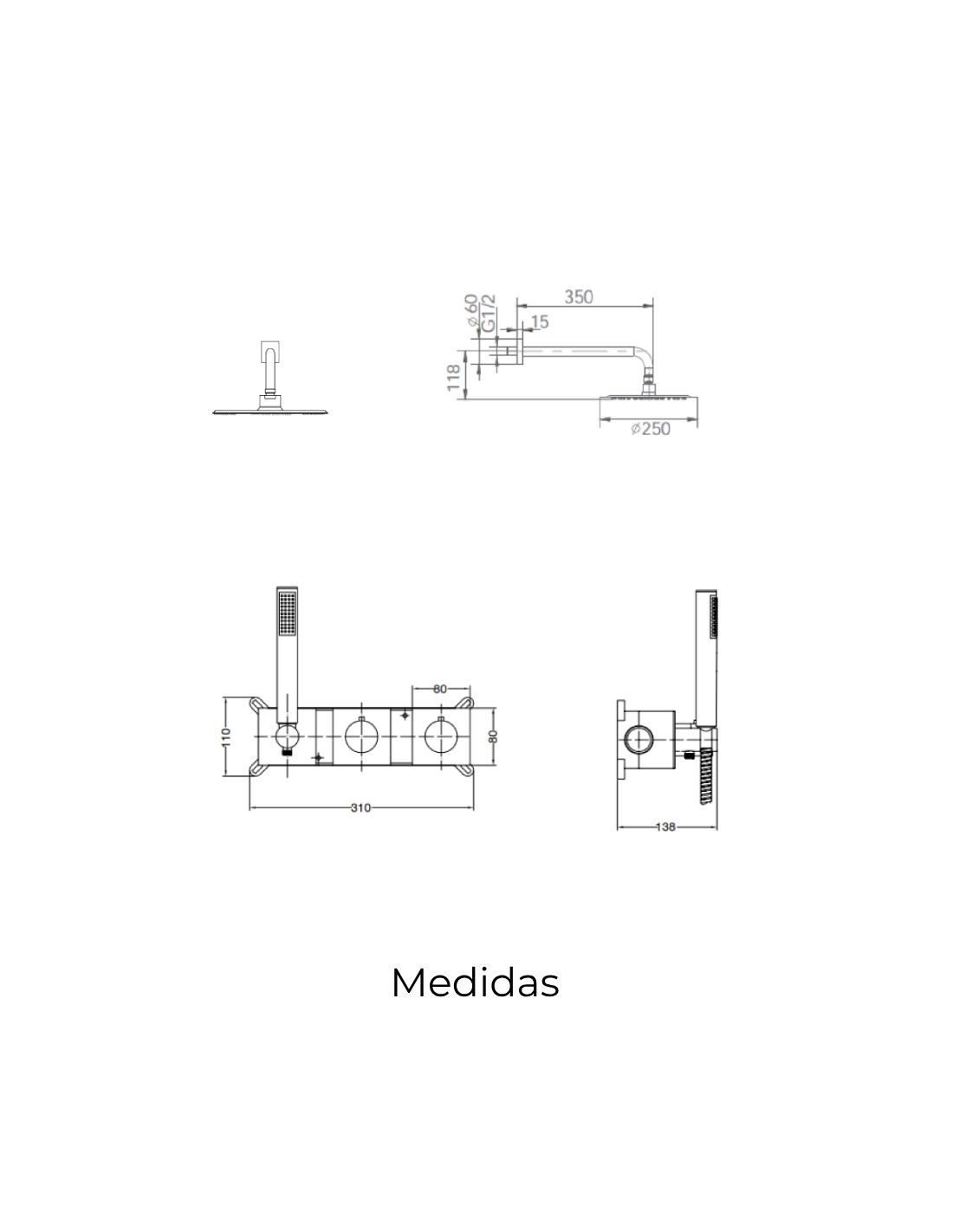 - Grifería de ducha empotrada termostática.