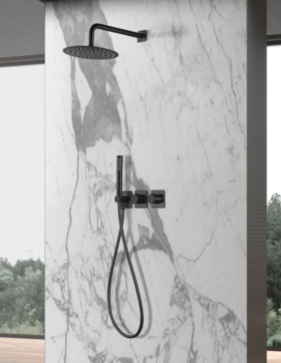 El Ducha empotrada termostática negro o black gun metal- TIBET de Imex es la elección ideal para quienes desean una experiencia de ducha controlada, segura y con una estética de vanguardia. Este sistema fusiona la máxima seguridad termostática con el impacto visual de los acabados oscuros de alta tendencia.