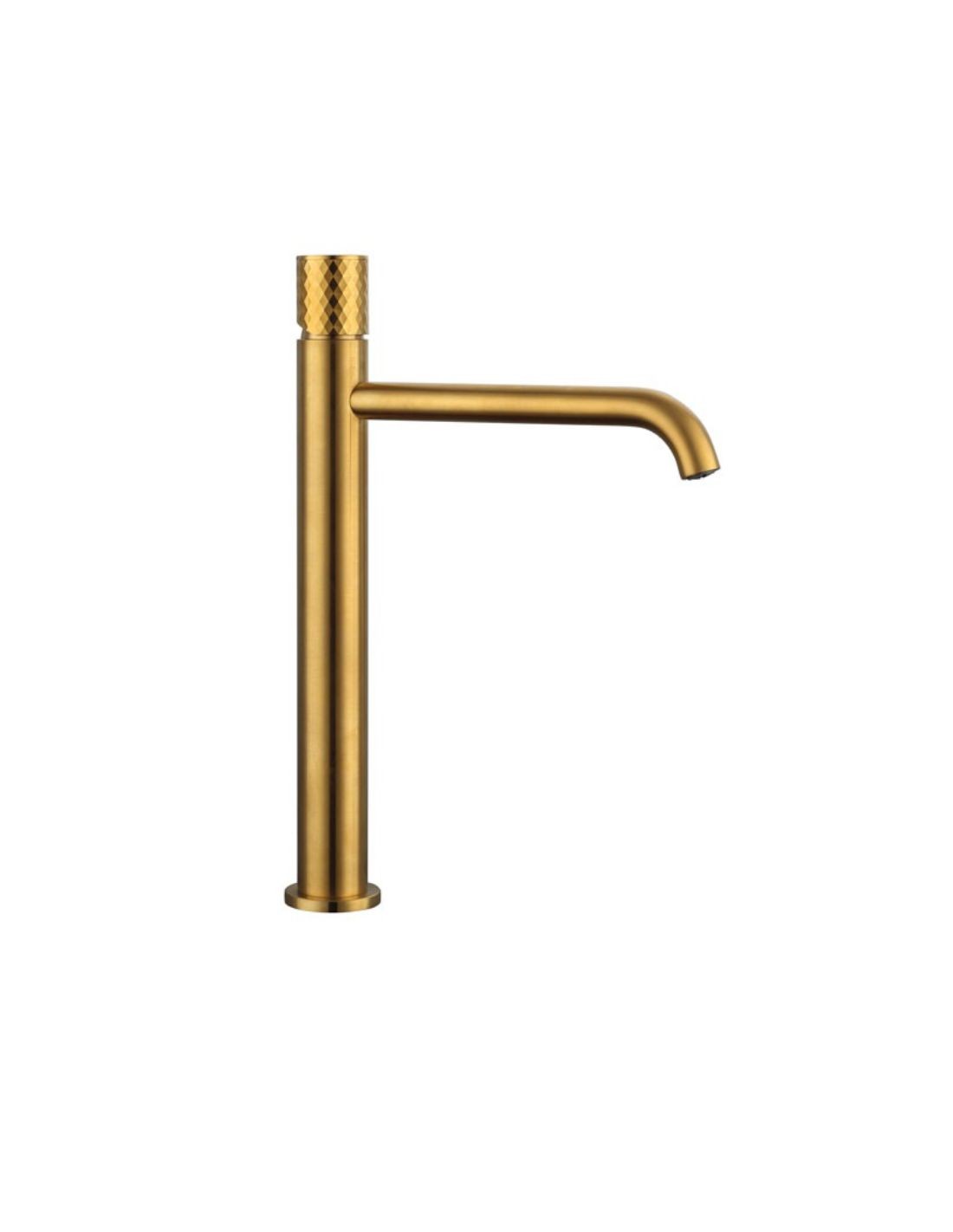 Transforme su cuarto de baño en un santuario de estilo con el Grifo oro cepillado para lavabo caño alto - Helios de GME. Este modelo ha sido diseñado específicamente para acompañar lavabos de sobreencimera, ofreciendo una silueta esbelta que combina líneas minimalistas con la calidez atemporal del dorado. La serie Helios destaca por su caño estilizado y una maneta de diseño ergonómico que aporta un aire de sofisticación moderna a cualquier mueble de baño.