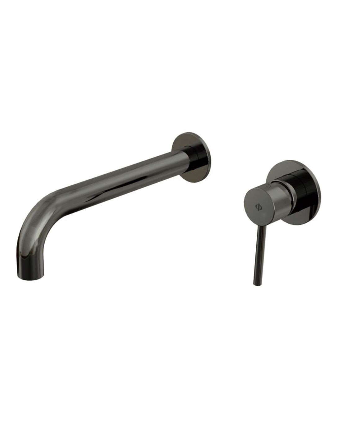 Maximice la sensación de amplitud y diseño en su cuarto de baño con el Grifería titanio empotrable para lavabo - Sirio de GME. Esta solución arquitectónica elimina los elementos visibles sobre la encimera, dejando todo el protagonismo a la pureza de sus líneas cilíndricas que emergen directamente de la pared. La serie Sirio representa el minimalismo más sofisticado, ahora elevado por un acabado gris metalizado oscuro que transmite lujo técnico y modernidad.