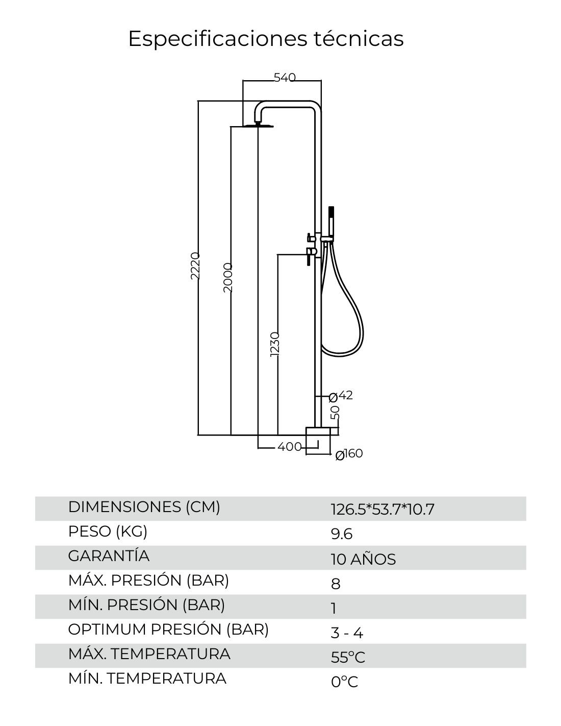 - Conexión mediante latiguillos a suelo con pedestal en acero inoxidable S.316 (incluidos).