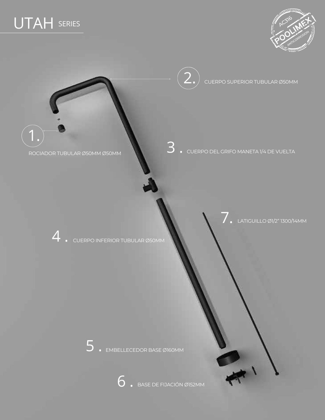 Conoce más sobre las características principales de la Ducha exterior piscina acero inoxidable negra - gris cobalto Utah de Imex: