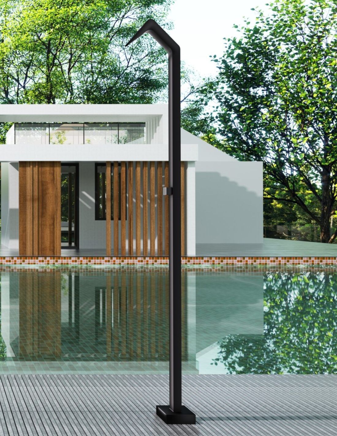 La Ducha piscina cascada negra - gris acero inox S316 modelo NIAGARA de Imex. es un elemento de diseño espectacular que transforma cualquier área de piscina o jardín en un espacio de bienestar y alto valor estético. Esta ducha no solo sirve como un refrescante elemento de jardín, sino que su efecto cascada ofrece un masaje relajante en cuello y hombros.