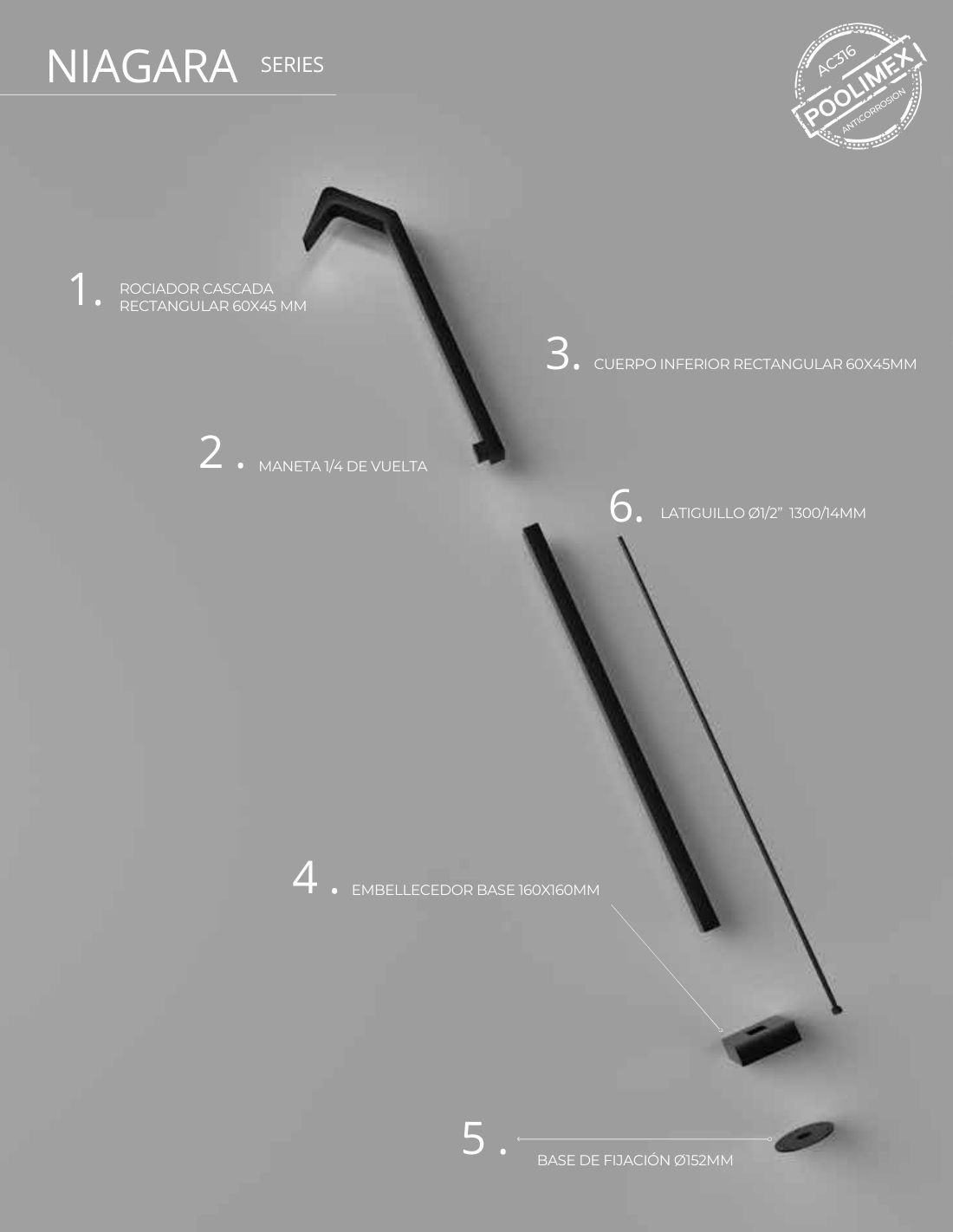 Ducha piscina cascada negra modelo de inoxidable S316 Niagara de Imex