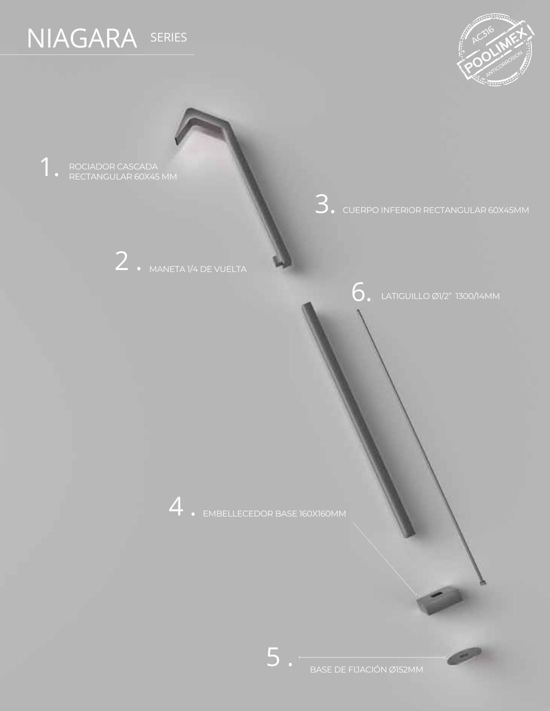 Conoce más sobre las características principales de la ducha piscina cascada negra o gris Niagara de acero inox S316: