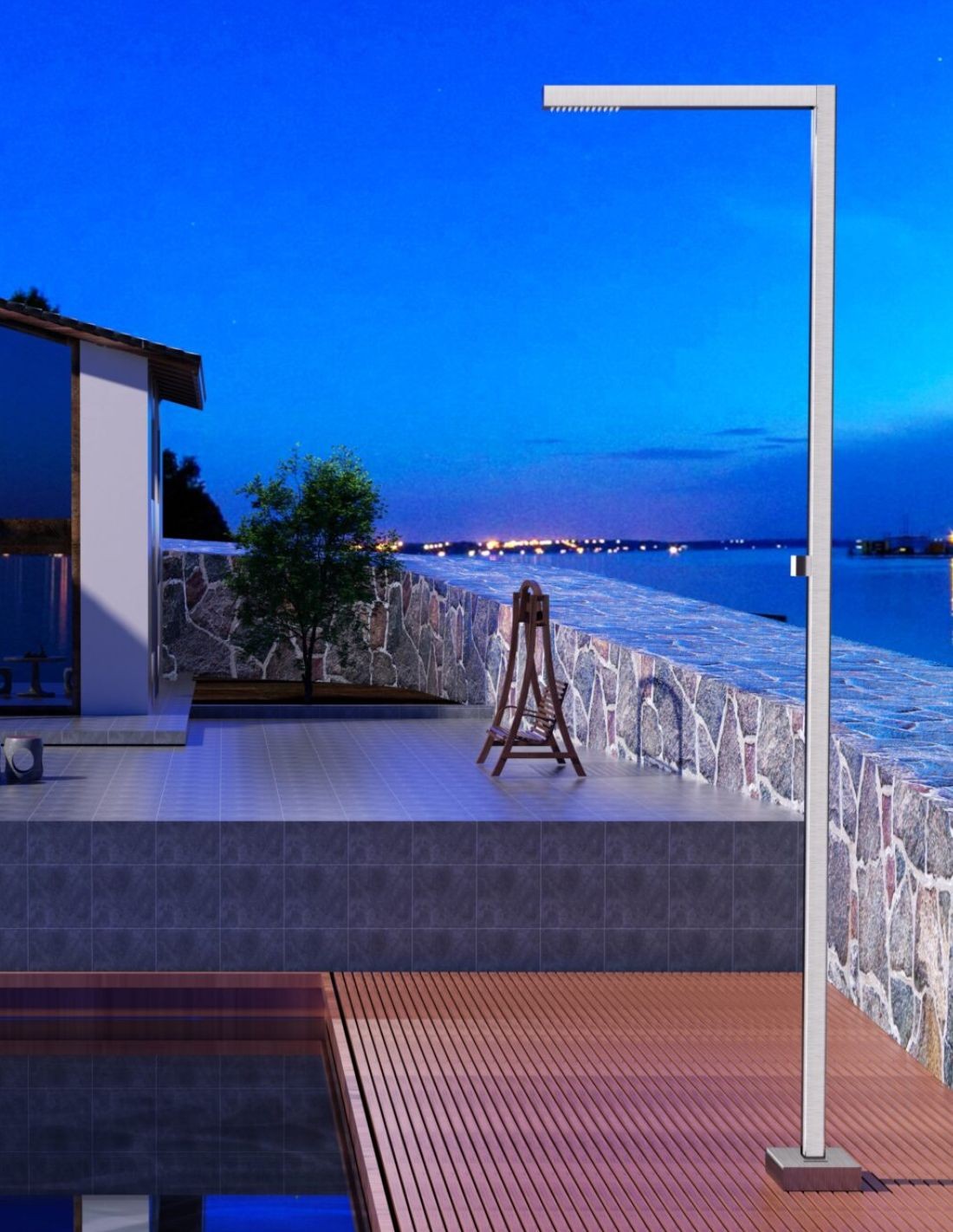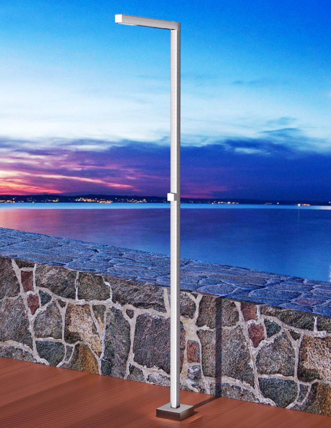 La Ducha acero inoxidable piscina - Alabama de Imex en acabado cromado ofrece una solución clásica y brillante para tu zona exterior. El cromo pulido aporta una luminosidad atemporal y se integra fácilmente en cualquier diseño de piscina o jardín. Fabricada con materiales resistentes a la intemperie, esta ducha combina la estética elegante del cromo con una funcionalidad robusta, garantizando una durabilidad prolongada y una limpieza sencilla en el ambiente exterior.