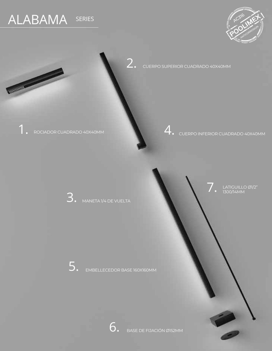 La Ducha acero inoxidable piscina negra - Alabama de Imex es una pieza de diseño vanguardista que combina la durabilidad del Acero Inoxidable con un sofisticado acabado negro mate. El acero garantiza una resistencia excelente a la intemperie y la corrosión, fundamental en áreas de piscina. La estética en negro mate aporta un toque moderno y minimalista, convirtiendo la ducha ALABAMA en un elemento robusto y elegante que realza el estilo de cualquier espacio exterior.