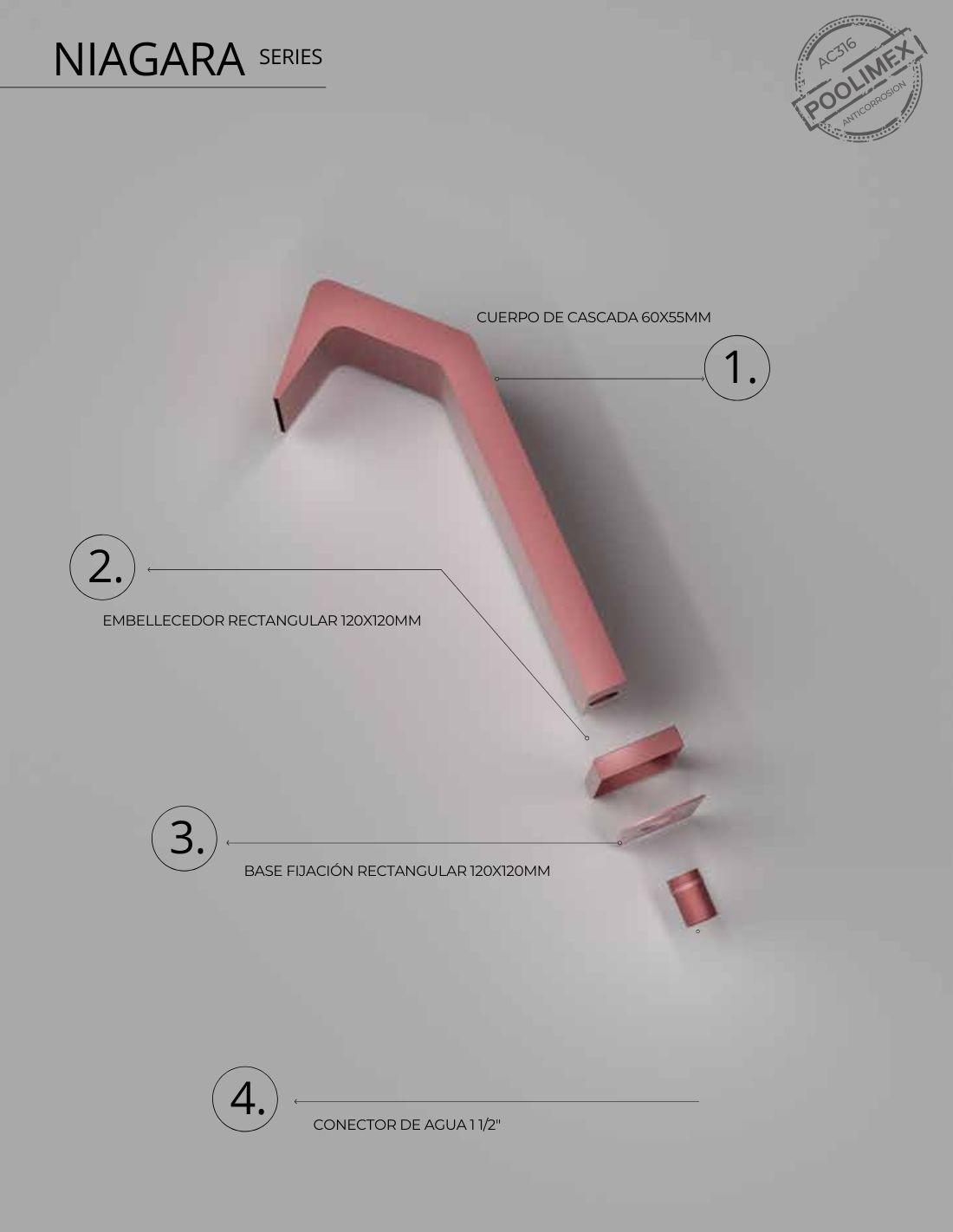 Conoce más sobre las características principales de la cascada para piscina colores Niágara de acero inox S316:
