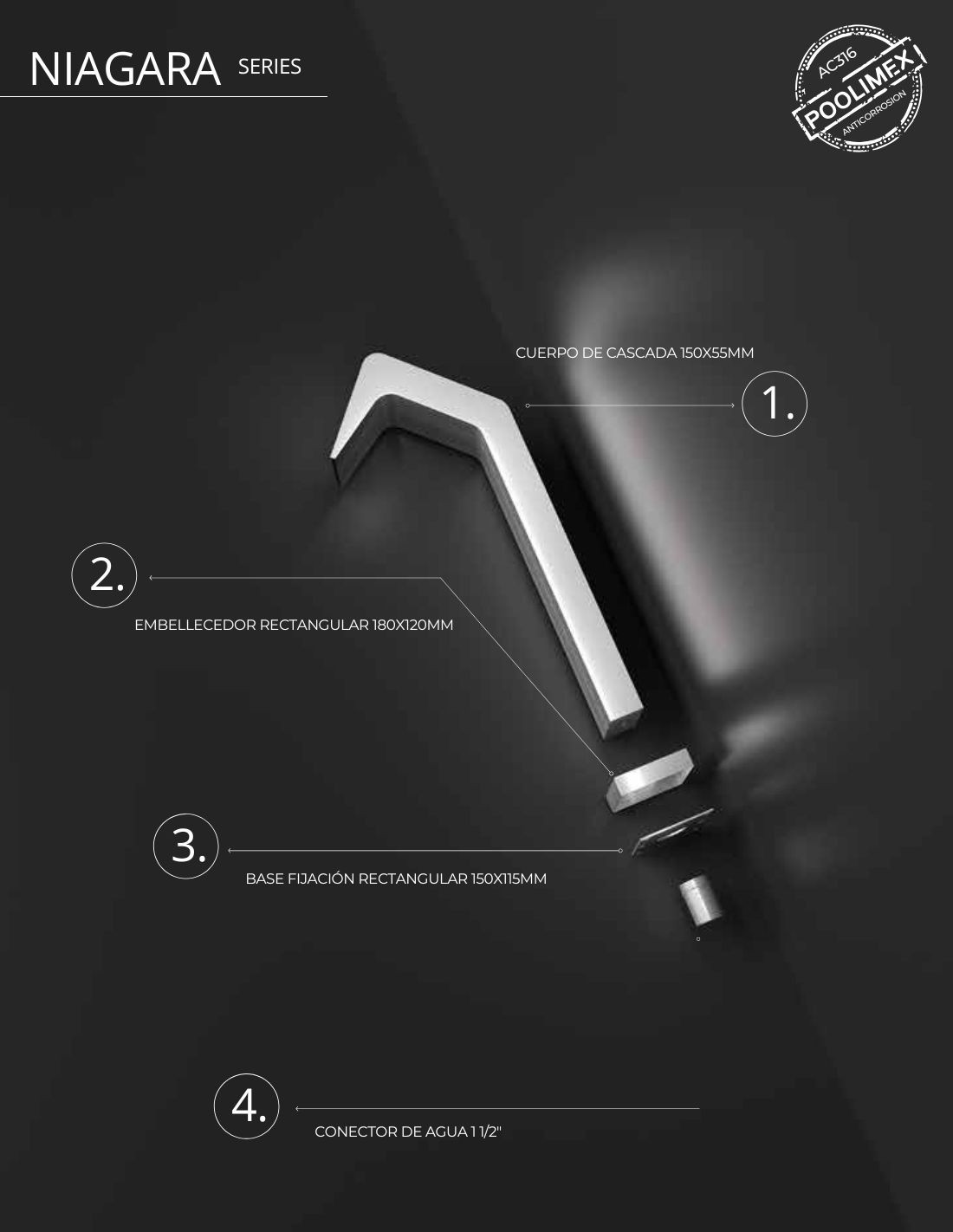 Conoce más sobre las características principales de la cascada de piscina Niágara 2 de acero inox S316: