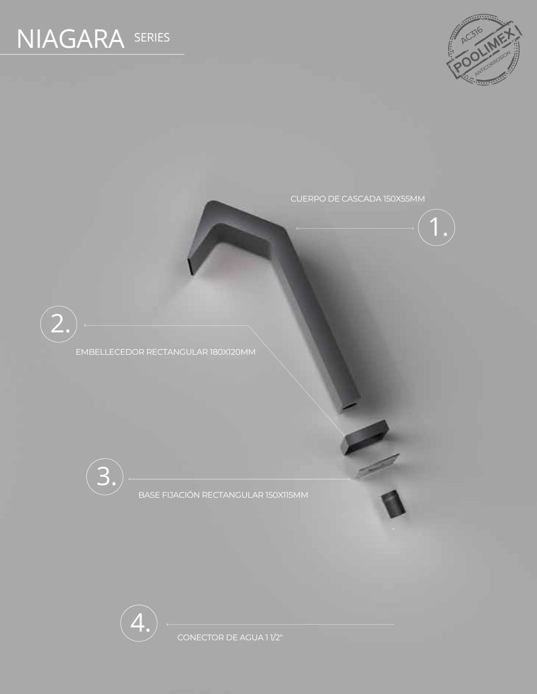 Conoce más sobre las características principales de la cascada de piscina negra - gris Niágara 2 de acero inox S316: