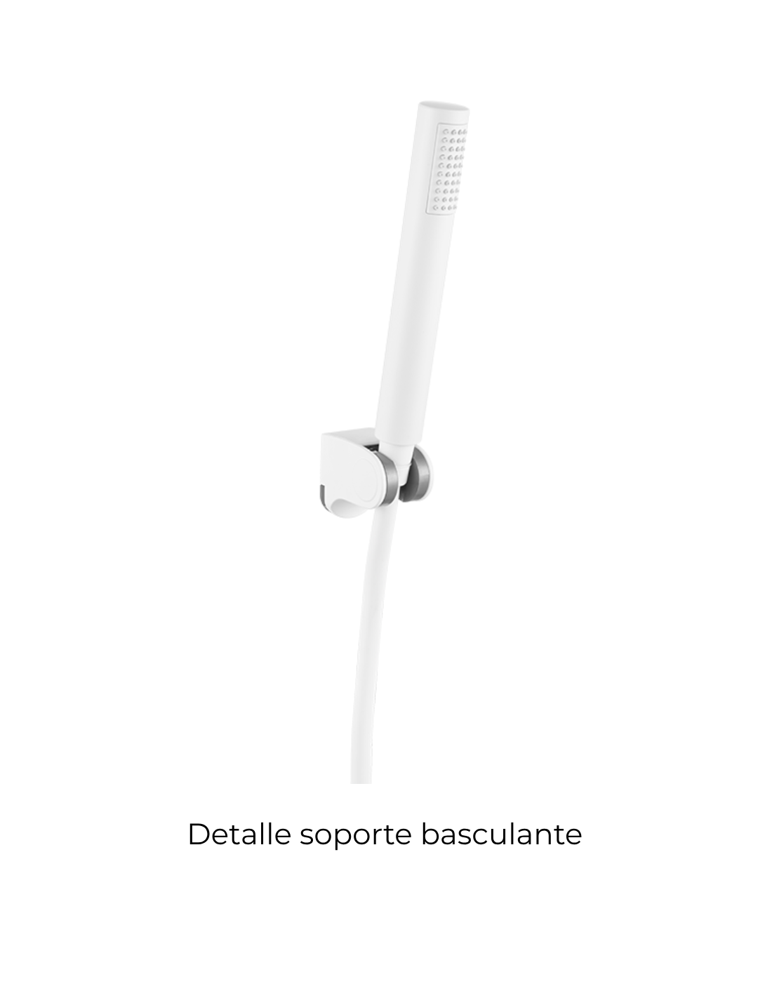 Grifo ducha blanco modelo chic detalle soporte basculante
