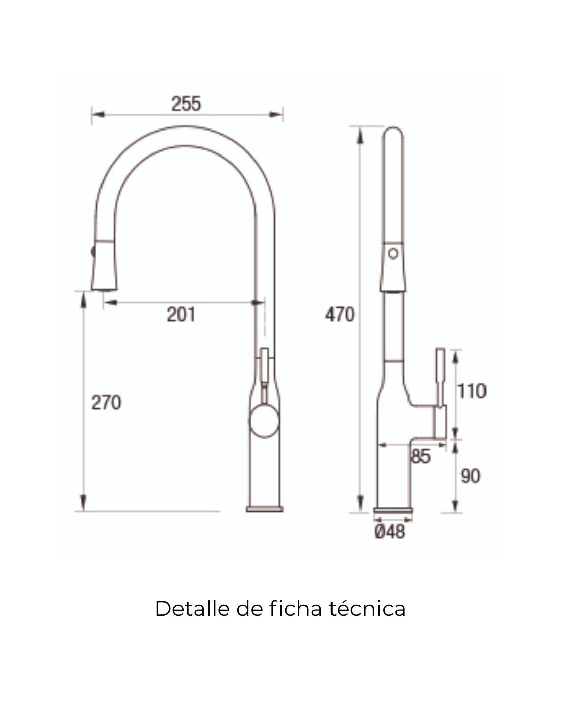 Este grifo se distingue por su diseño versátil y su construcción en latón de alta calidad, lo que le confiere una excelente resistencia al desgaste y a la corrosión (disponible en acabados como Cromo Brillo, Negro Mate, etc.). Su caño giratorio (generalmente con una forma de arco o "cuello de cisne") proporciona la altura y el alcance necesarios para las tareas diarias de la cocina. El cartucho monomando asegura un uso suave, preciso y duradero.