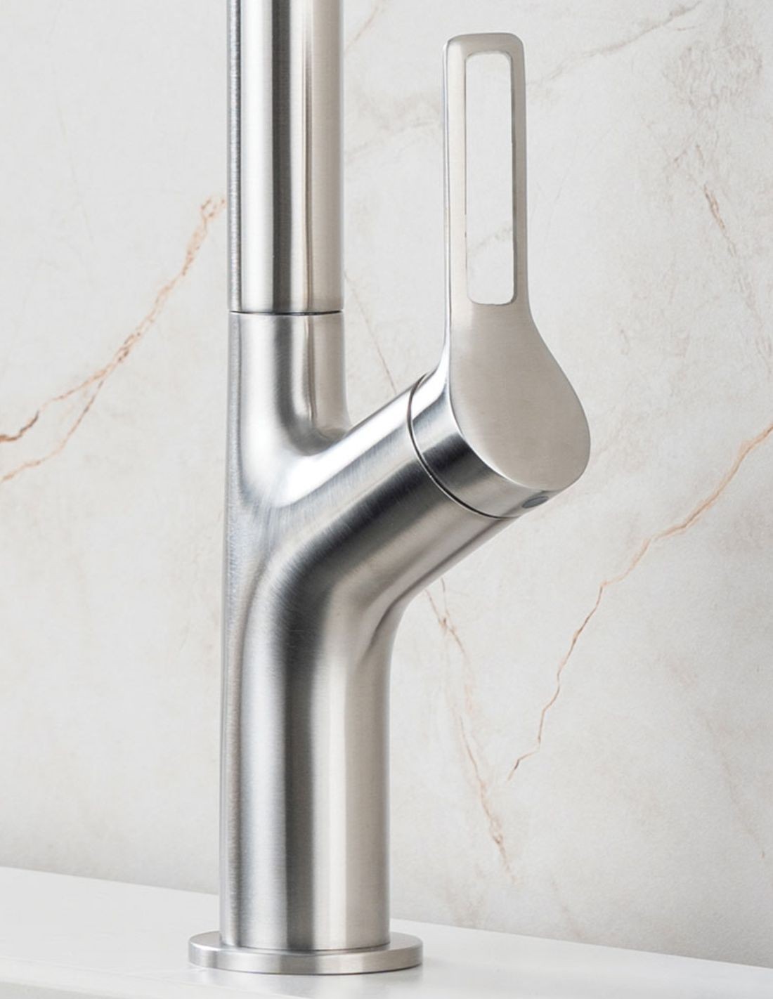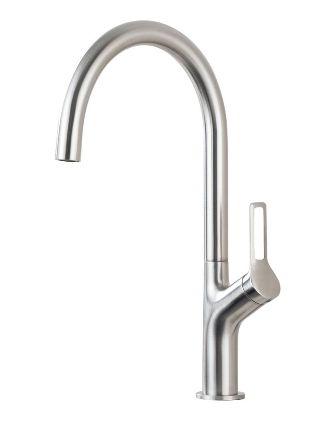 Su diseño en forma de “U” invertida aporta un toque distintivo y minimalista, además de facilitar el llenado de recipientes altos y el uso diario del fregadero. El sistema monomando permite un control preciso del caudal y la temperatura del agua, asegurando comodidad y eficiencia en cada uso.