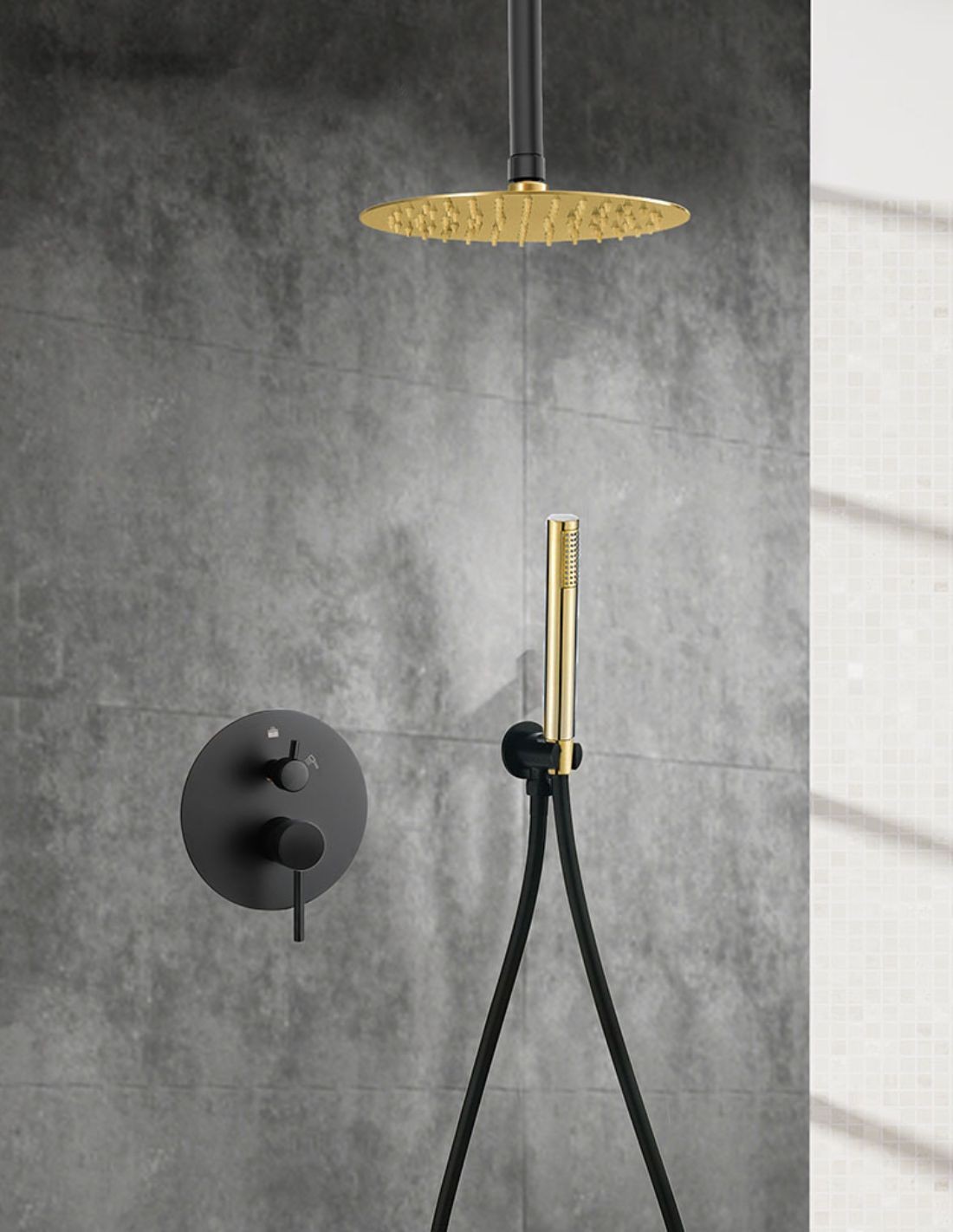 Ducha empotrada techo negra/oro modelo Oslo de Bathplus.
