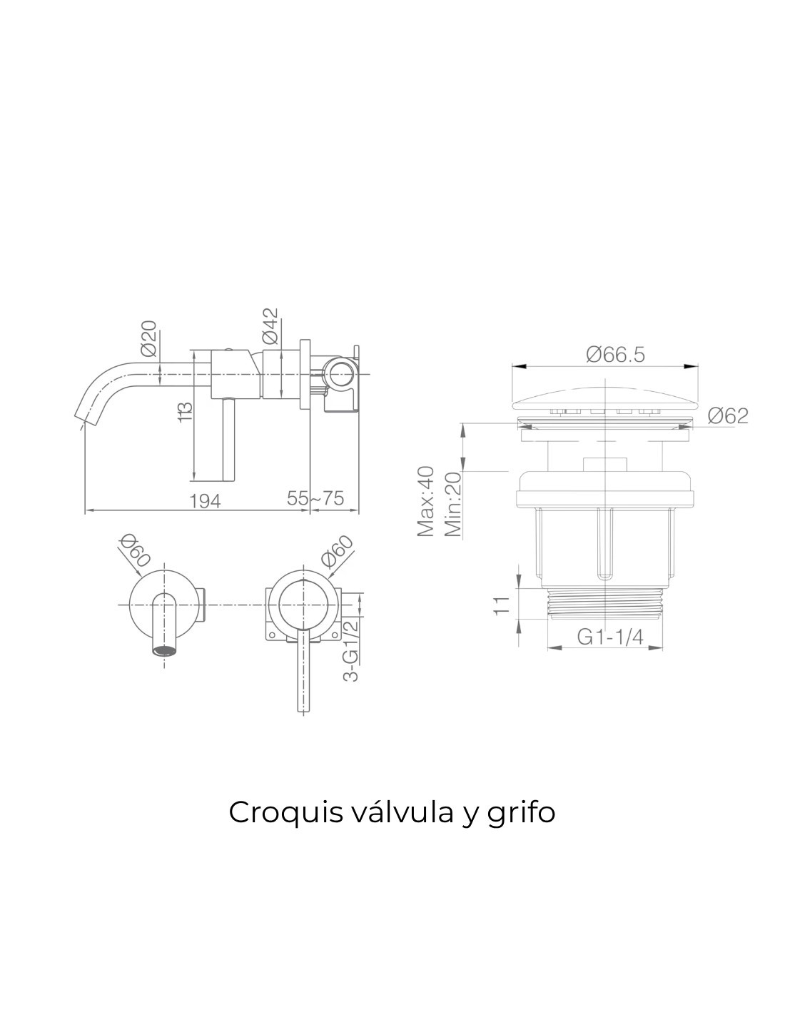 - Compatible con todo tipo de lavabos y bidés, con o sin rebosadero.