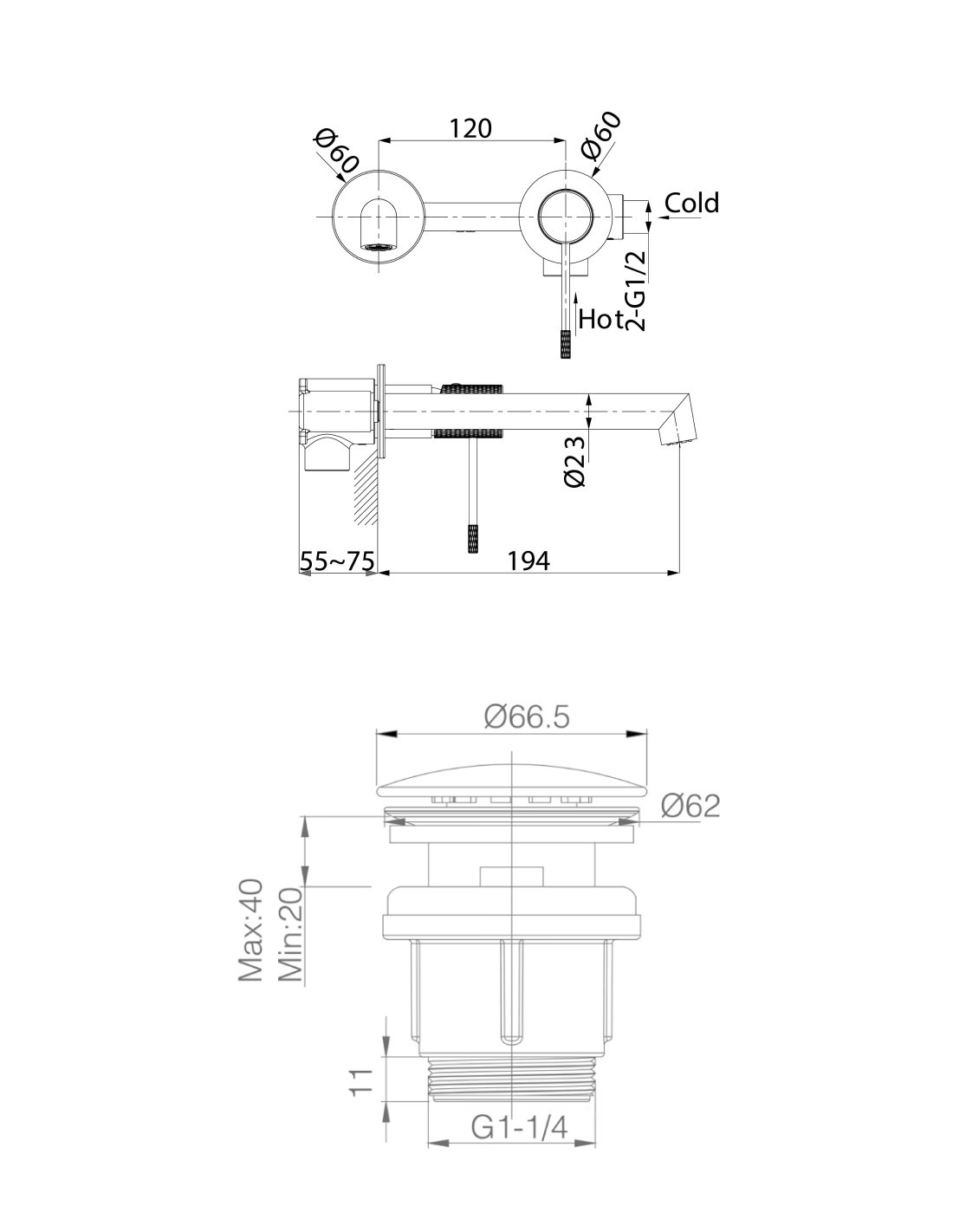 - Compatible con todo tipo de lavabos y bidés, con o sin rebosadero.