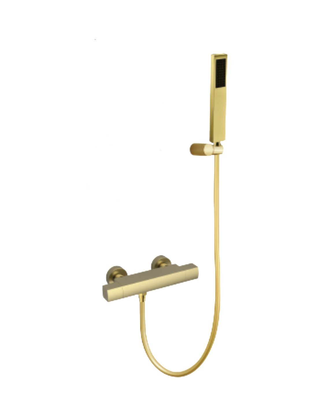 El Conjunto de ducha - con soporte oro YANET de Lluvibath ofrece la combinación ideal de estilo, confort y calidad. Su acabado oro brillante aporta un toque de sofisticación y calidez al baño, convirtiéndolo en un espacio elegante y contemporáneo.
