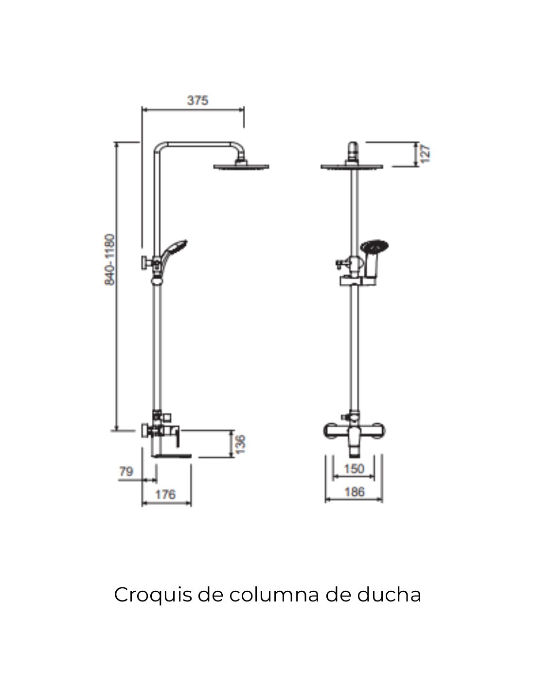 - Columna de ducha regulable: 840 - 1180 cm.