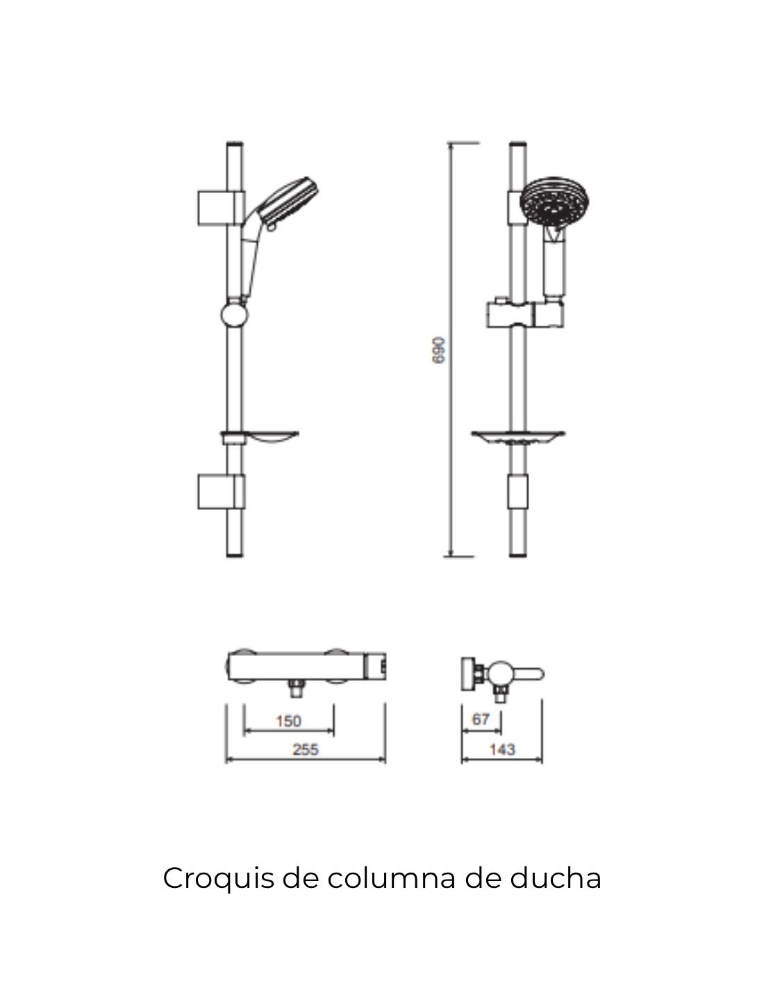 Fabricada en latón de alta calidad, esta columna de ducha garantiza resistencia y durabilidad frente a la humedad y el uso diario. Incorpora un cartucho monomando cerámico de 35 mm, que permite un control suave y preciso del caudal y la temperatura del agua.