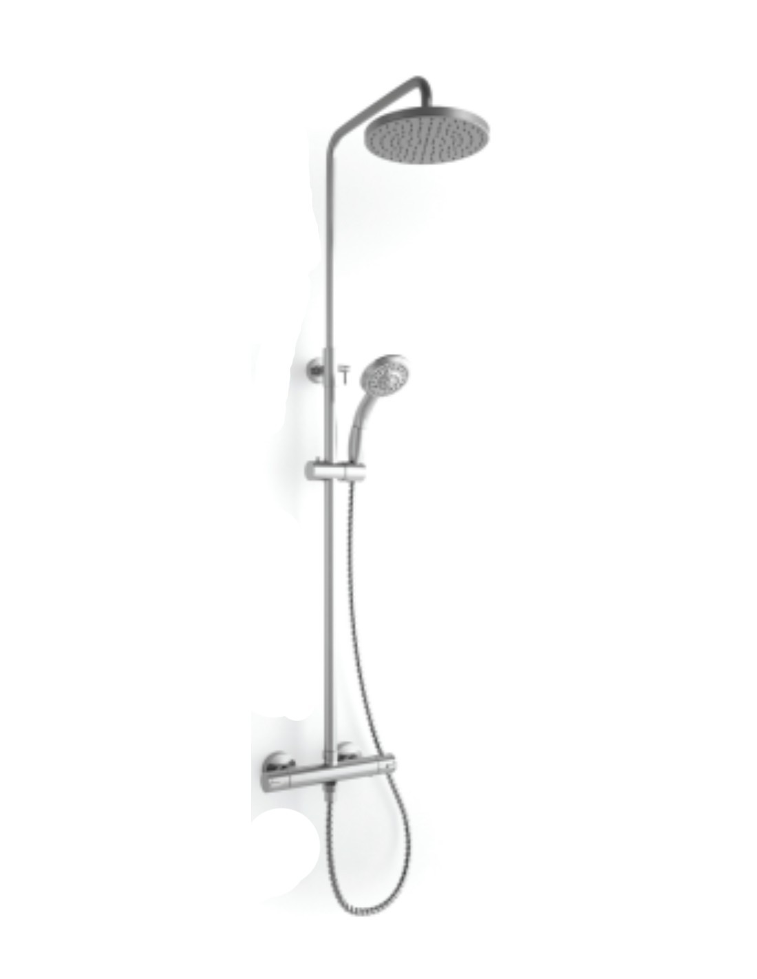Fabricada en latón de alta calidad, esta columna de ducha garantiza resistencia y durabilidad frente a la humedad y el uso diario. Incorpora un cartucho termostático con sensor vernet de 34 mm, que permite un control suave y preciso del caudal y la temperatura del agua.