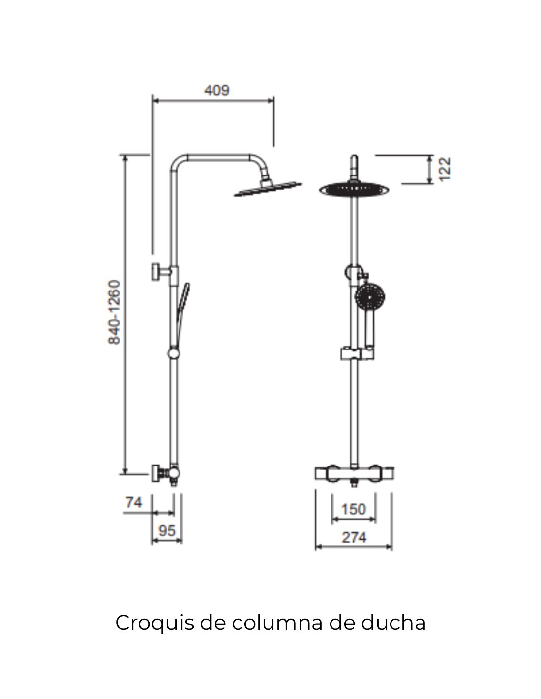 - Columna de ducha regulable: 840- 1260 cm.