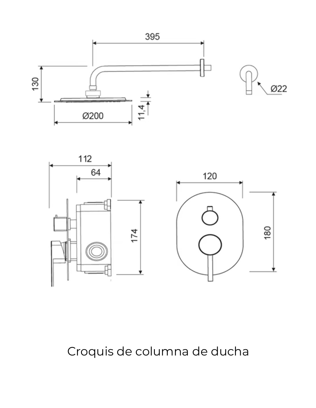 Características principales de la Conjunto de ducha empotrado - cromo redondo NOTI de Lluvibath: