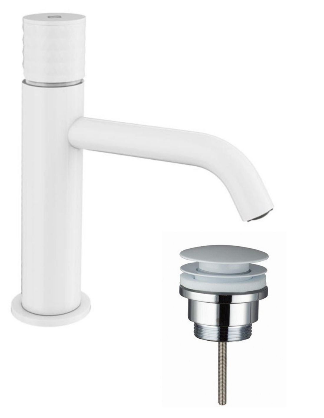 Pack Grifo lavabo bajo - blanco + Válvula click-clack HELIOS de GME