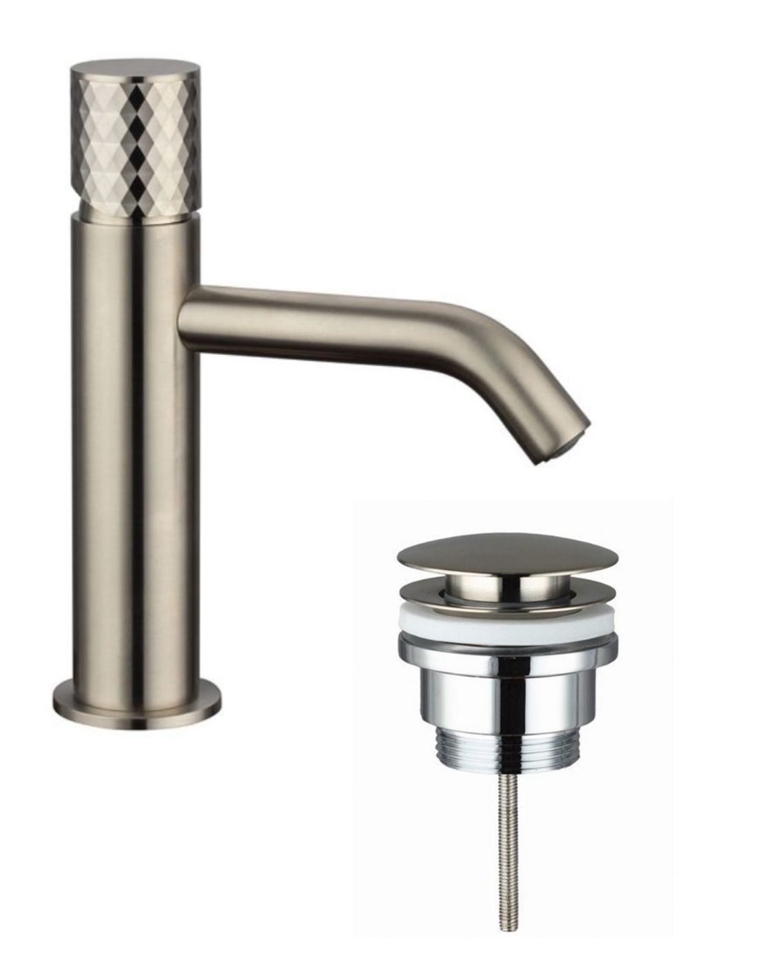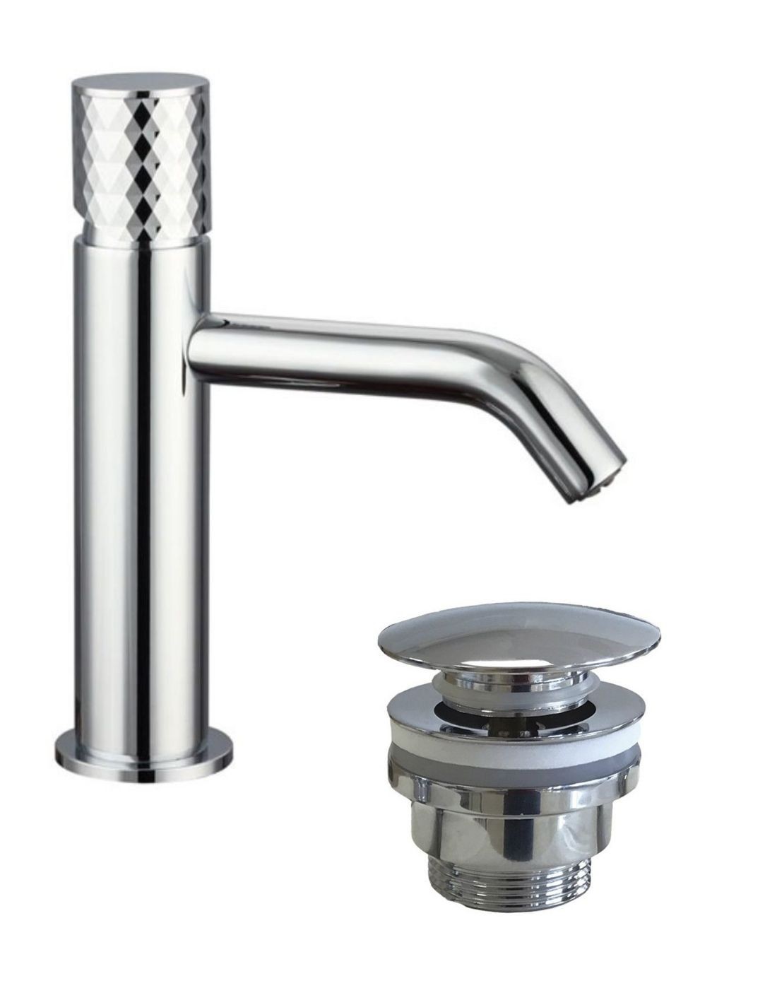 Pack Grifo lavabo bajo - cromo/níquel + Válvula click-clack HELIOS de GME