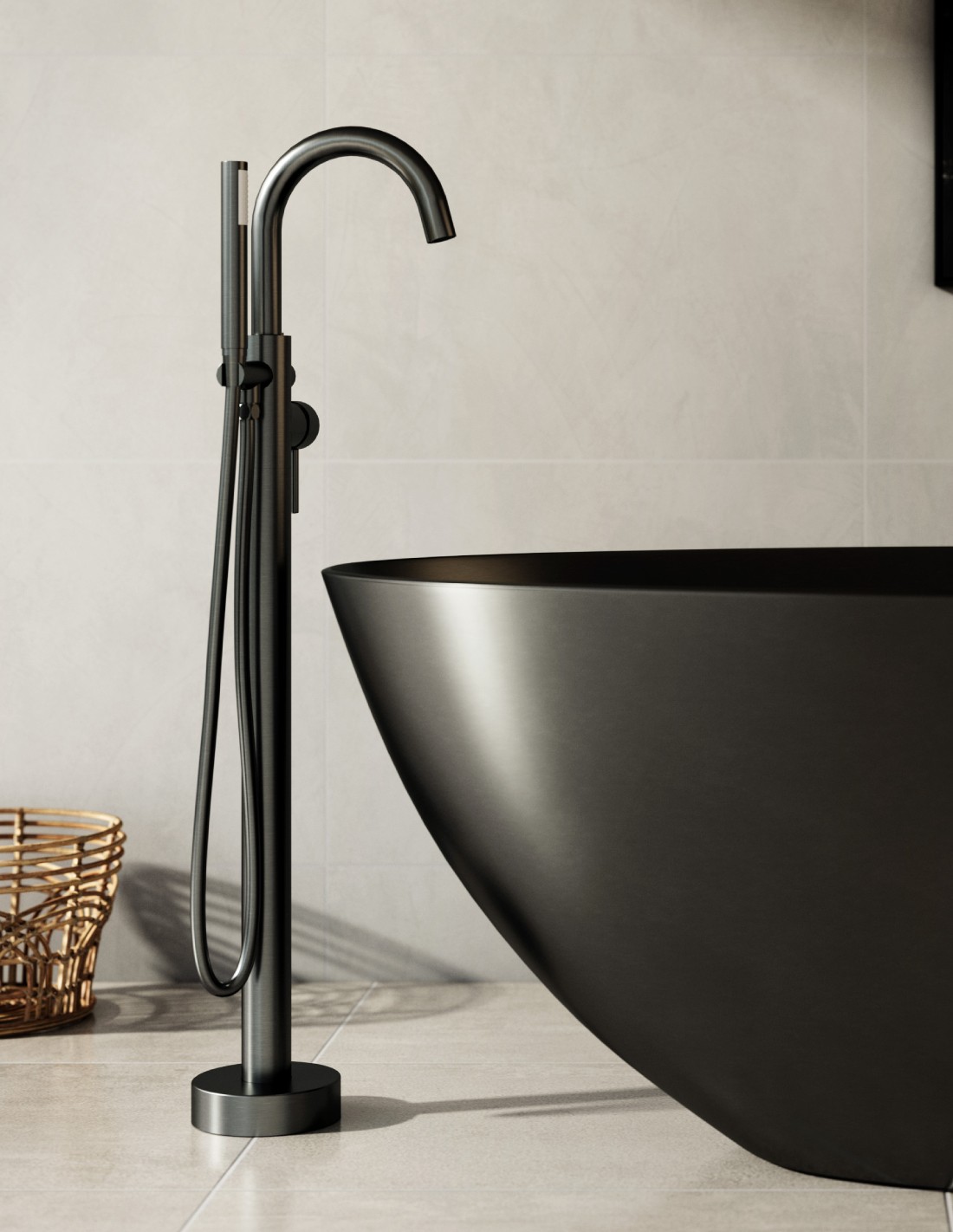 Eleva tu cuarto de baño a la categoría de spa de lujo con la grifería bañera exenta titanio Round de GME. Esta pieza es mucho más que un grifo; es un elemento arquitectónico diseñado para acompañar a las bañeras de diseño independiente (bañeras exentas), aportando una presencia majestuosa y una funcionalidad superior. Su diseño basado en la pureza de las líneas cilíndricas crea una estética fluida y minimalista que encaja a la perfección en baños modernos y diáfanos.