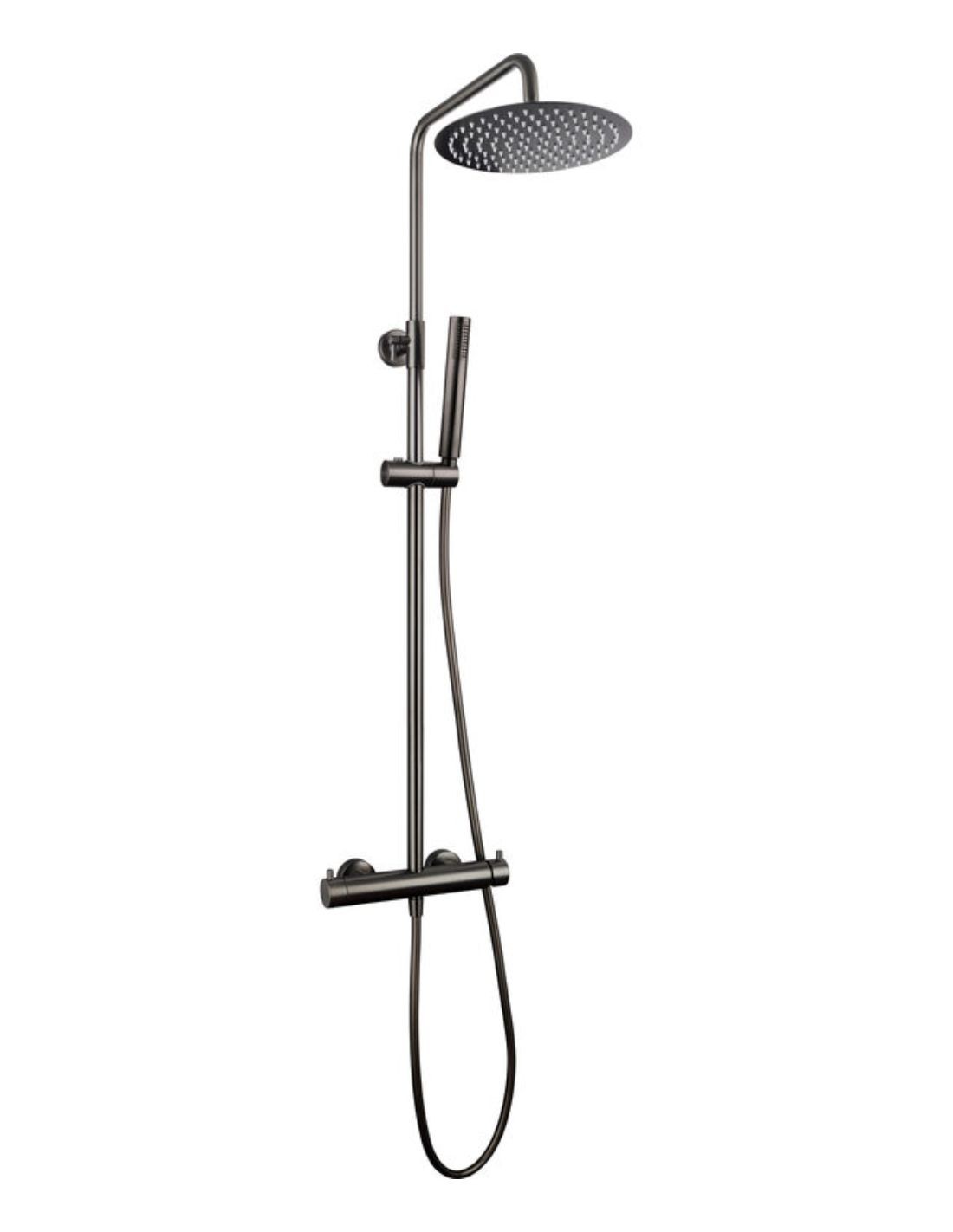 La Columna monomando negro - Inverter UNIK de GME representa la vanguardia en sistemas de ducha monomando. Su diseño se caracteriza por un cuerpo de grifería cilíndrico donde el desviador de caudal está integrado directamente en el mando, eliminando pomos externos y logrando una estética ultra limpia y arquitectónica. Gracias a su tecnología 'Cold-Start', la columna promueve el ahorro energético al evitar el encendido accidental de la caldera en la posición central del mando.
