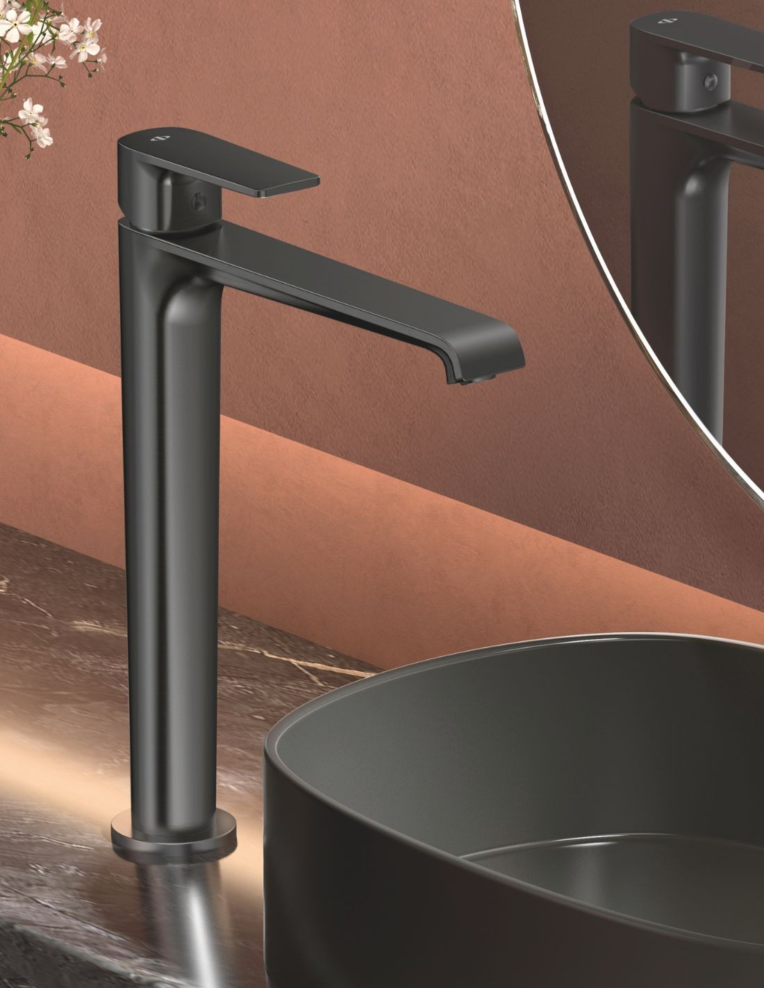 Descubra cómo la esbeltez característica de la serie FIORE adquiere una nueva dimensión de elegancia bajo este tono oscuro. Es el aliado perfecto para baños de diseño contemporáneo o inspiración industrial, aportando un carácter fuerte y una distinción visual que no deja a nadie indiferente. Redefina su lavabo diario con una estética que equilibra fuerza y refinamiento.
