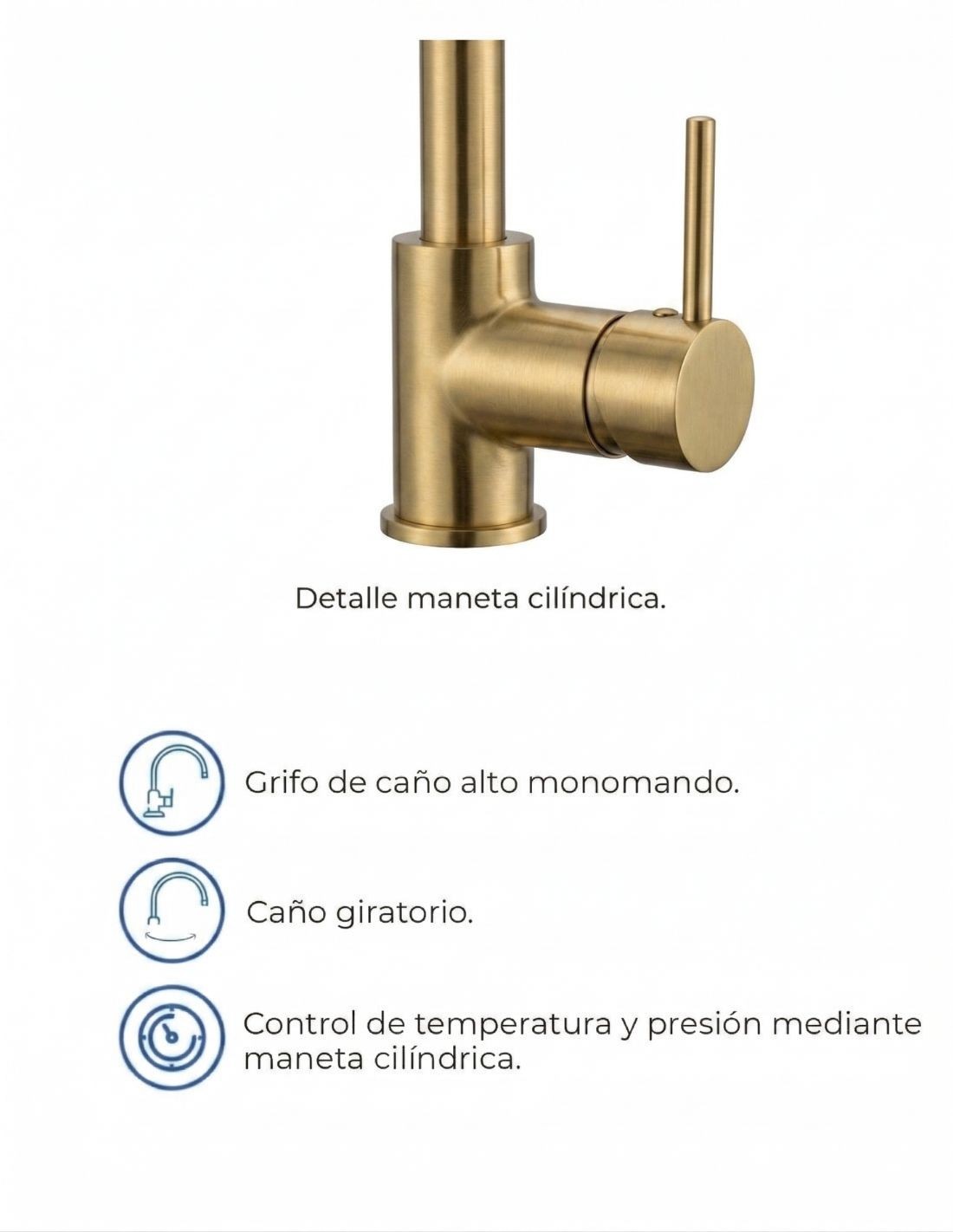 Características principales del Grifo cocina extraíble monomando oro - Round de GME: