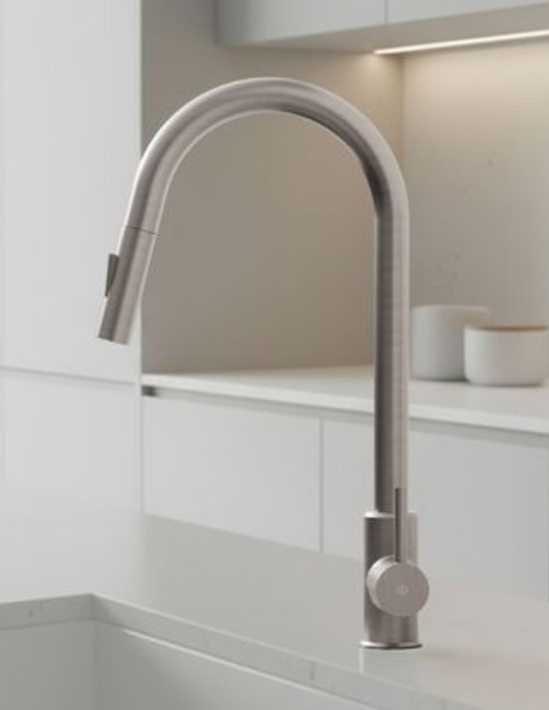 Eleve el rendimiento de su fregadero con el Grifo cocina extraíble monomando níquel - Round de GME. Este modelo ha sido diseñado para quienes ven la cocina como un espacio de creación constante y necesitan herramientas que estén a la altura. La serie Round Extraíble fusiona la suavidad de las líneas cilíndricas con la versatilidad de un cabezal extensible, todo ello envuelto en un elegante acabado en níquel que aporta un aire profesional y contemporáneo.