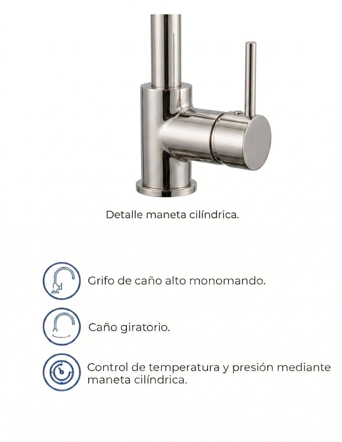 Características principales del Grifo cocina extraíble monomando níquel - Round de GME: