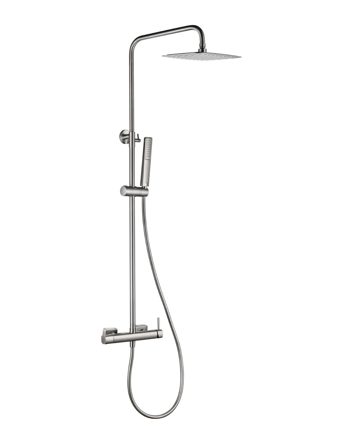 Disfrute de una experiencia de ducha renovadora con el Conjunto barra de ducha monomando níquel - TOSCANA de IMEX en acabado níquel cepillado. Este sistema destaca por un diseño de líneas suaves y redondeadas que aportan una estética limpia y equilibrada a cualquier cuarto de baño contemporáneo.