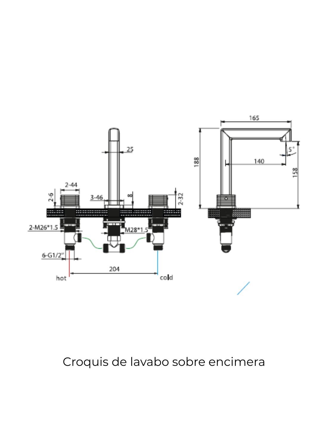 - Grifo de lavabo sobre-encimera.