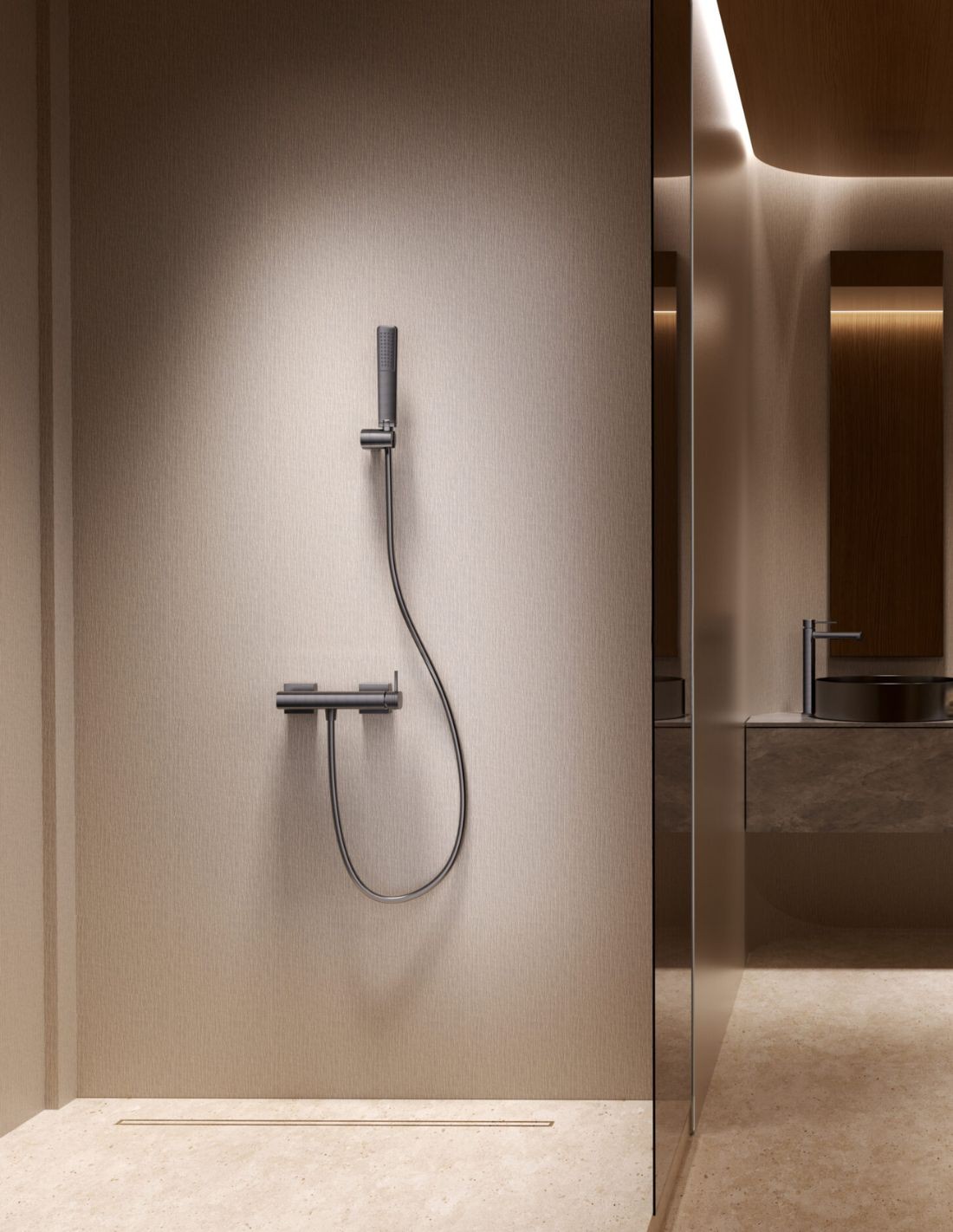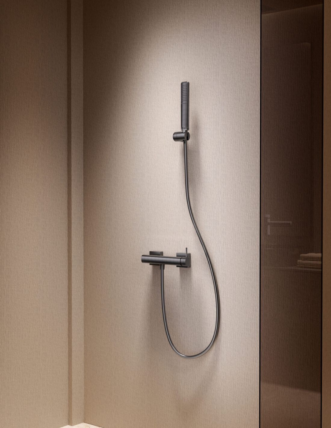 Su acabado en black gun metal de alta calidad no solo ilumina el espacio, sino que ofrece una superficie resistente y fácil de mantener, convirtiendo su ducha en un espacio de pura armonía visual.