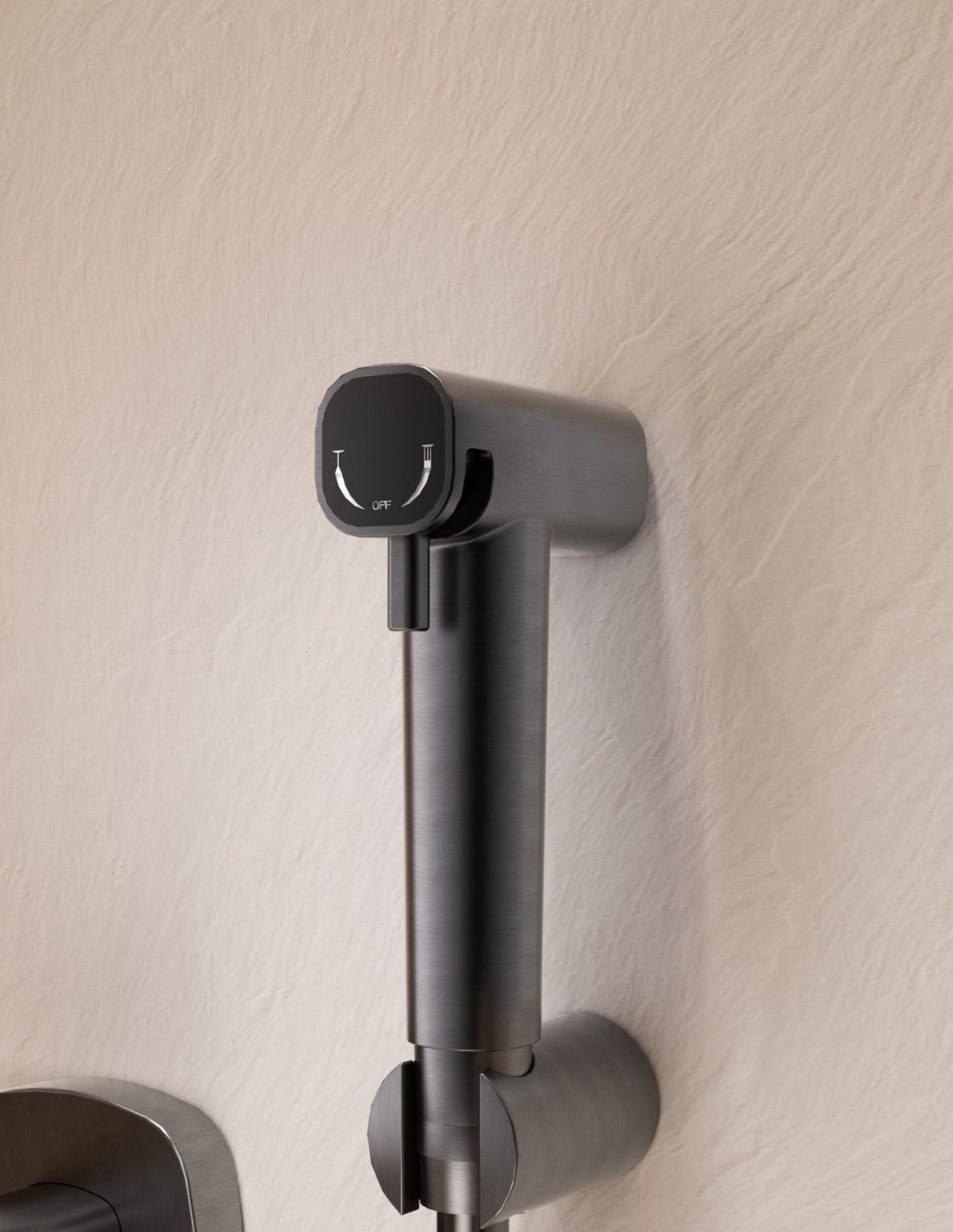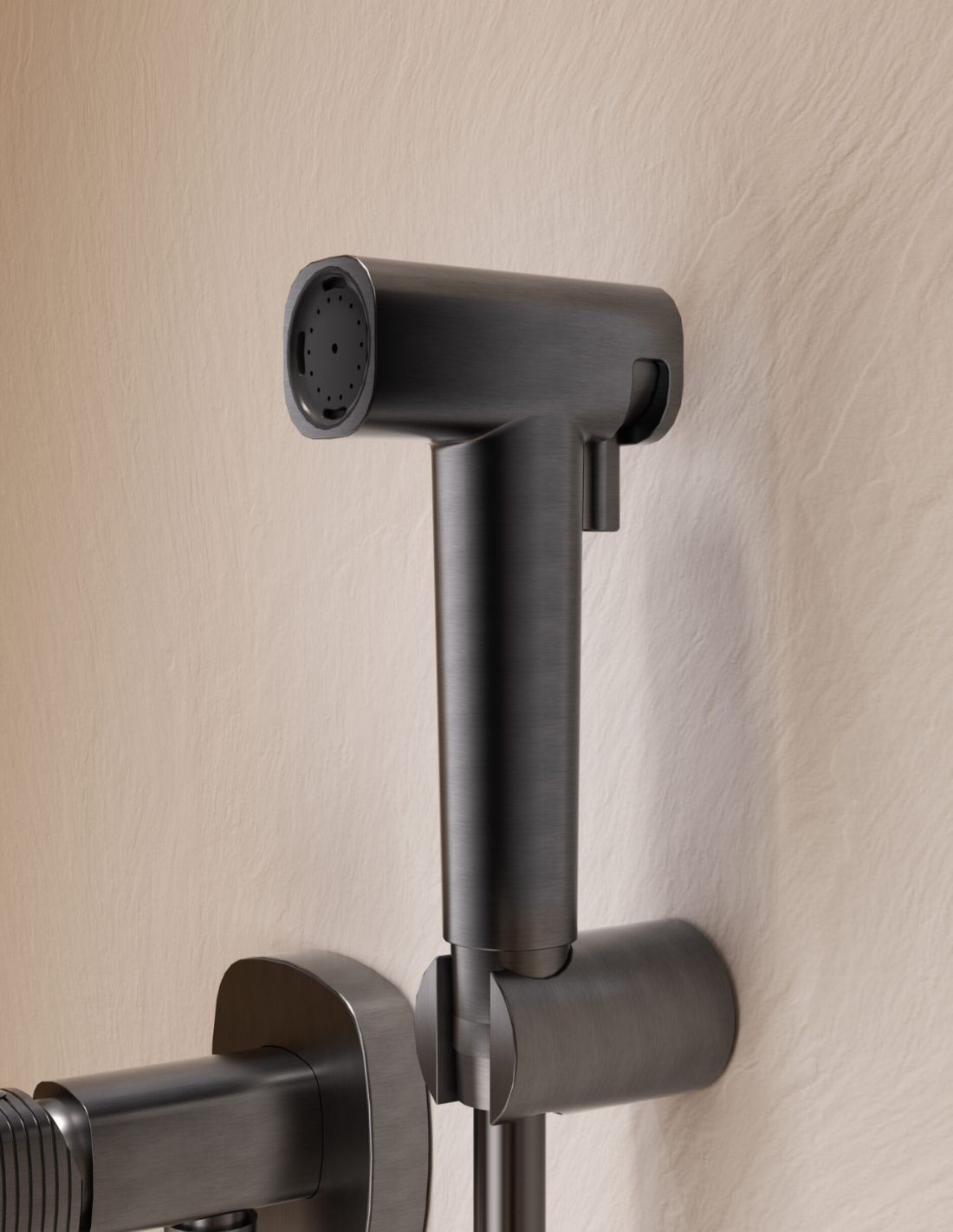 El Grifo de bidé empotrado monomando - black gun metal FIRENZE de IMEX es la solución perfecta para baños contemporáneos que buscan optimizar el espacio sin renunciar al confort. Al instalarse directamente en la pared junto al inodoro, este sistema elimina la necesidad de un bidé tradicional, liberando metros cuadrados y aportando una estética limpia y despejada.